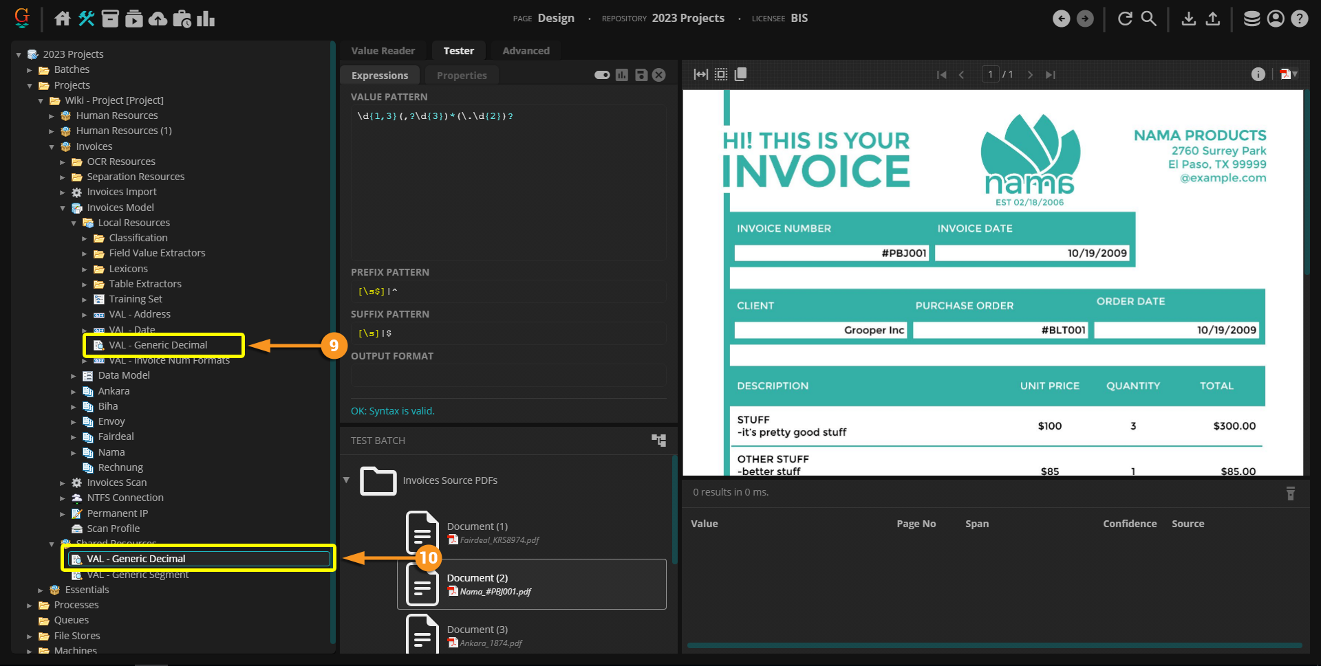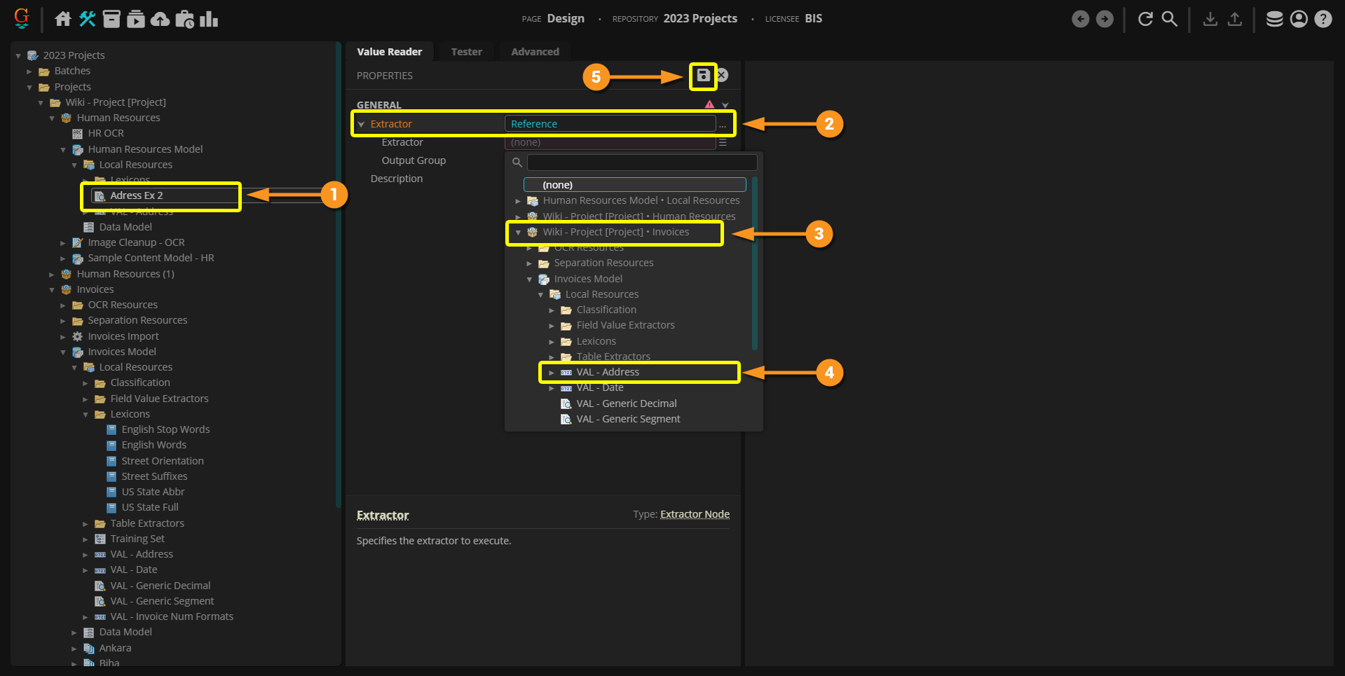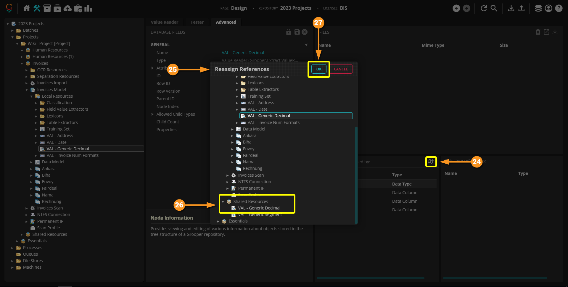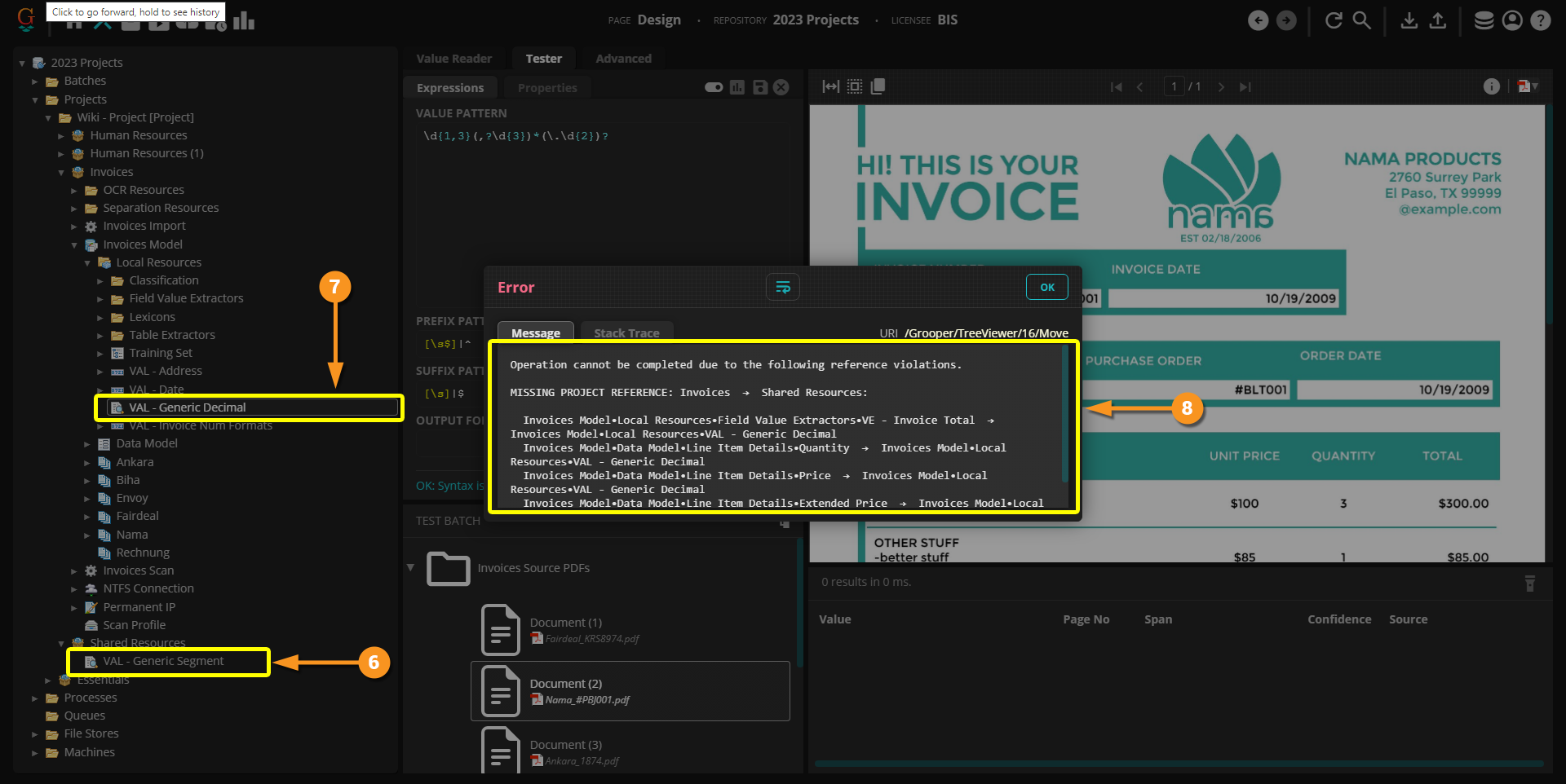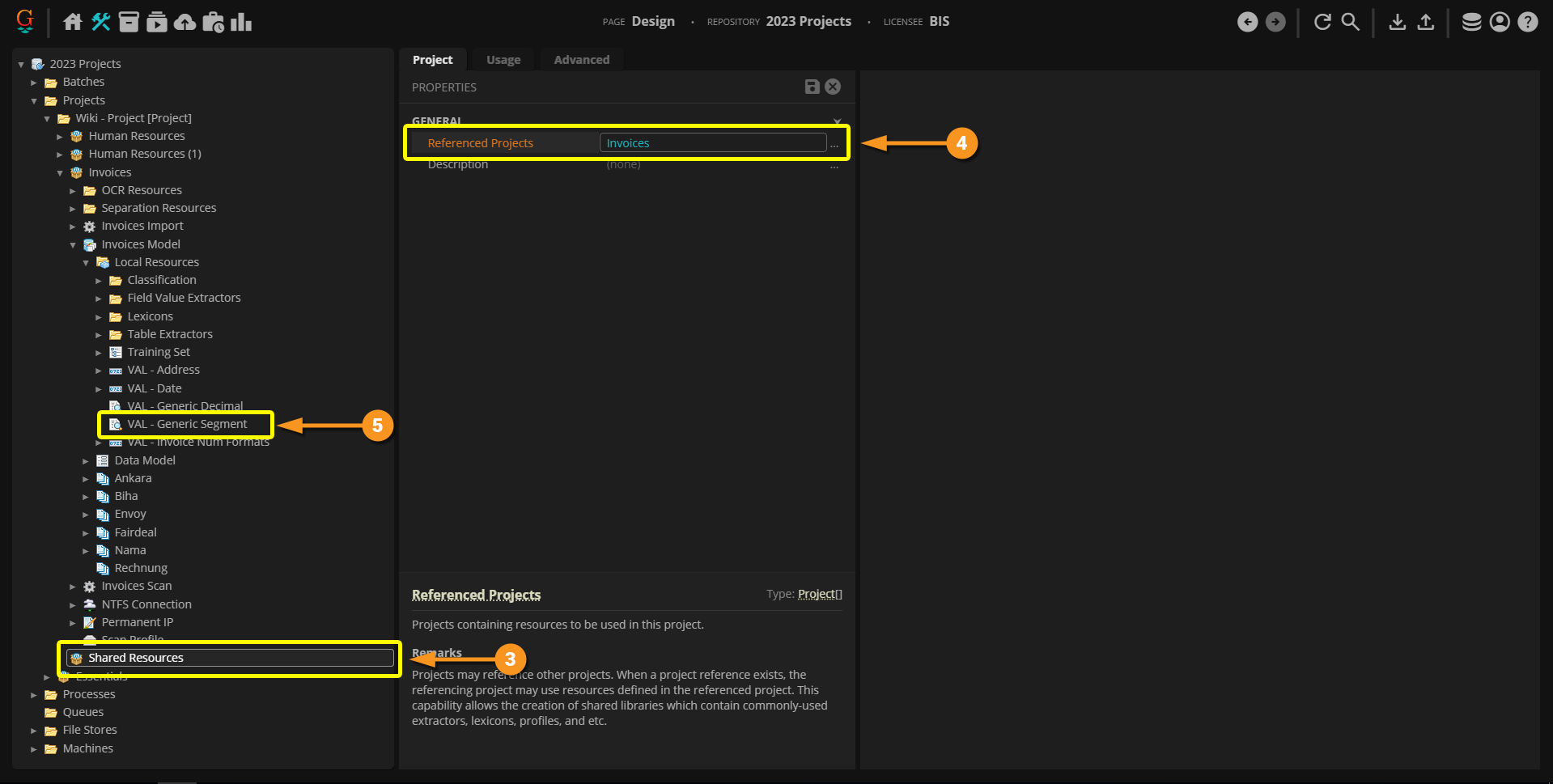 Now, if you truly want to use this as a "shared" or "global" resource, you can reassign all the references to the "VAL - Generic Decimal" extractor within the "Invoices" Project. Ultimately, we will need the "Invoices" Project to reference the "Shared Resources" Project to reassign the references.