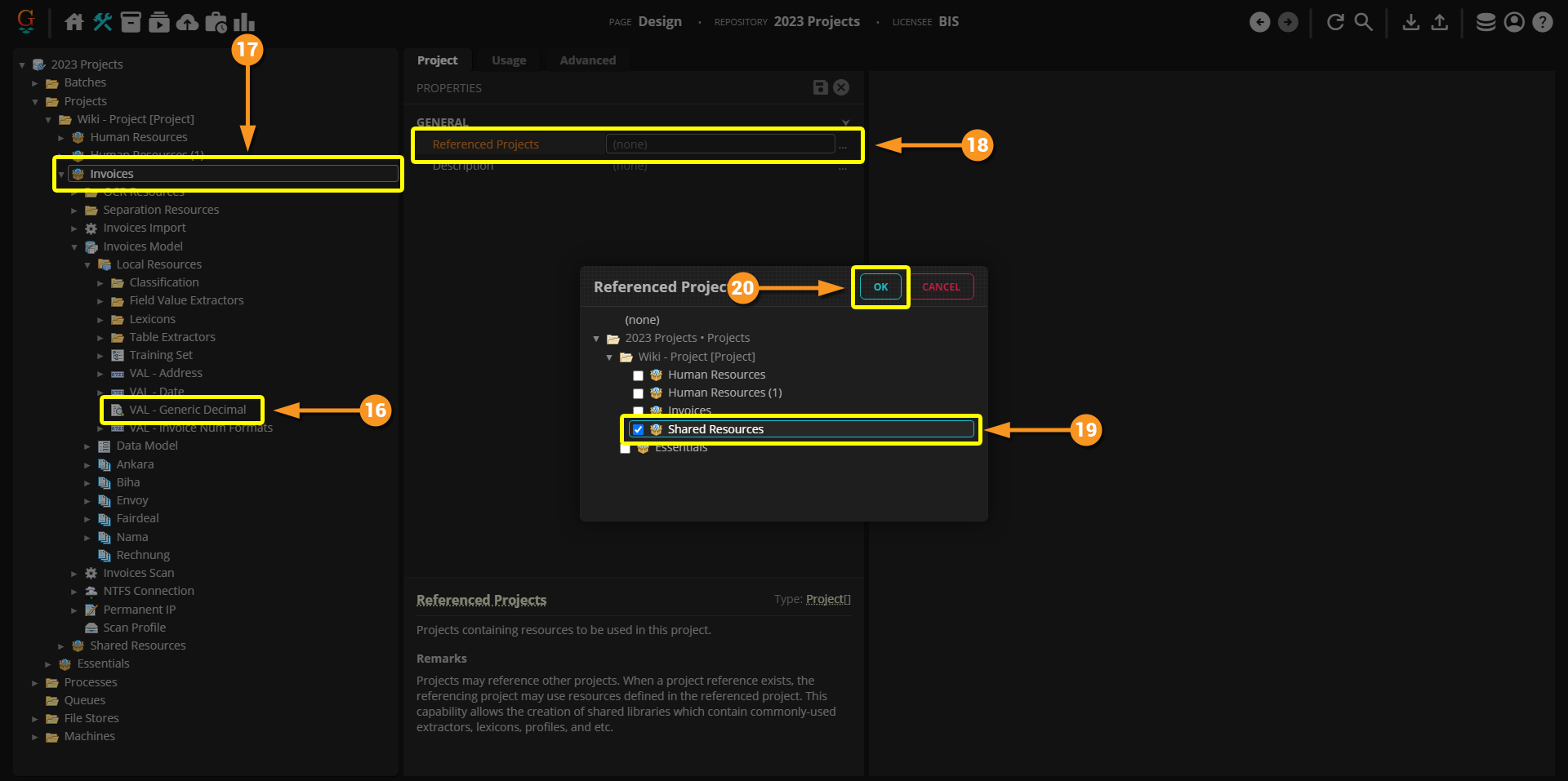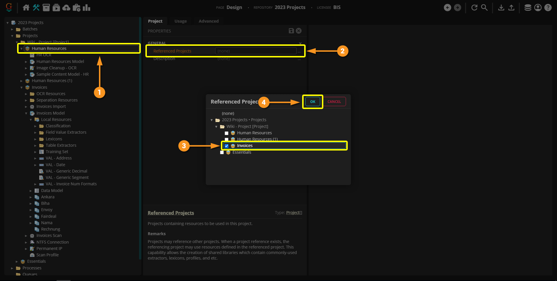 All we need to do in order to make this happen, is effectively tell Grooper it's ok for the "Human Resources" Project to share assets with the "Invoices" Project. We do this by referencing the whole Project.