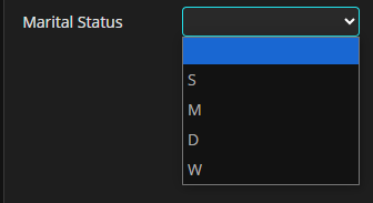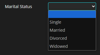 • Example: A "Marital Status" field with options for "Single", "Married", "Divorced" and "Widowed".