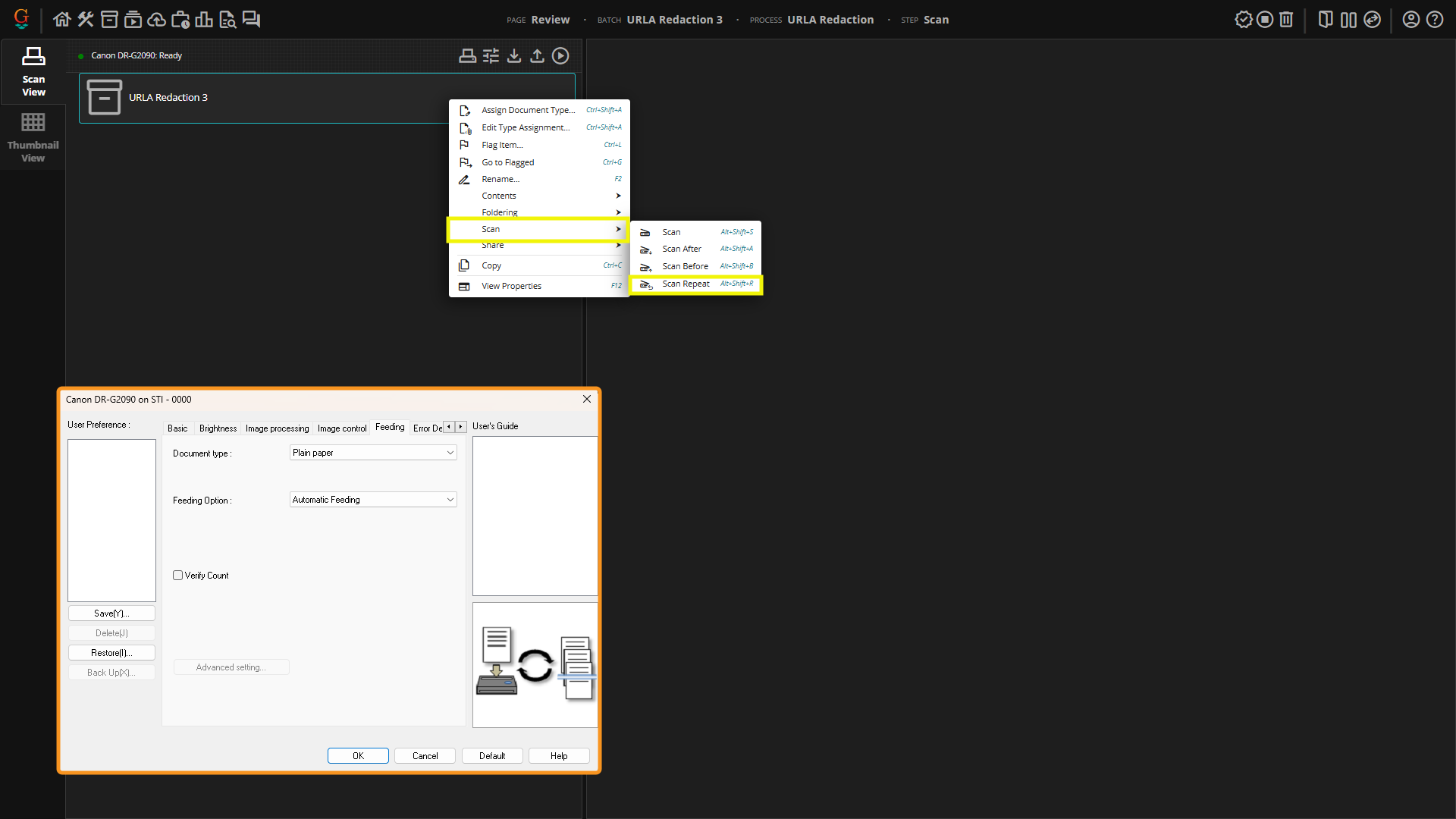 Scan Repeat vs Automatic Feeding