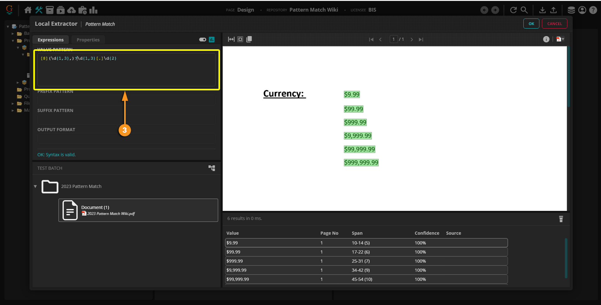 Pattern Match is one of the most commonly used extractors for general data. As per its name, it extracts data from a document matching a regex pattern entered into the Value Pattern.