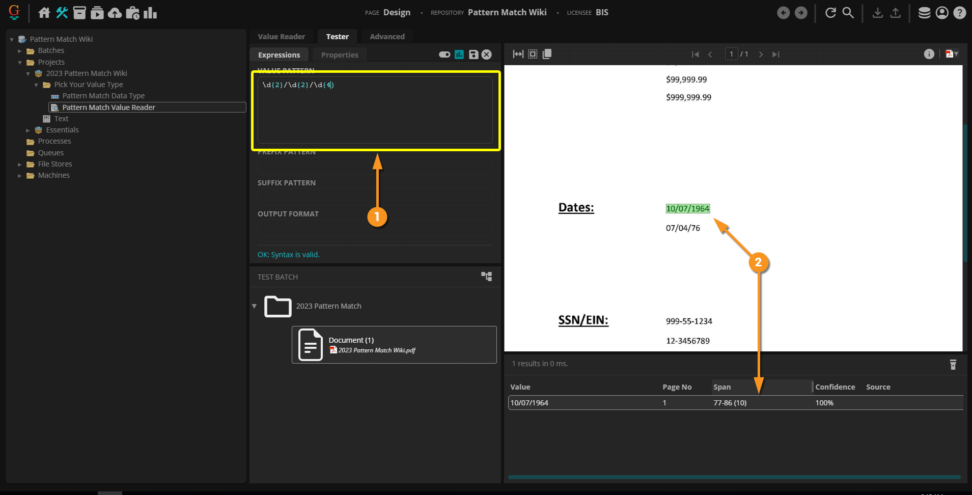 Pattern Match is an Extractor Type found in Grooper. This extractor primarily uses regular expression (regex) for general data extraction.