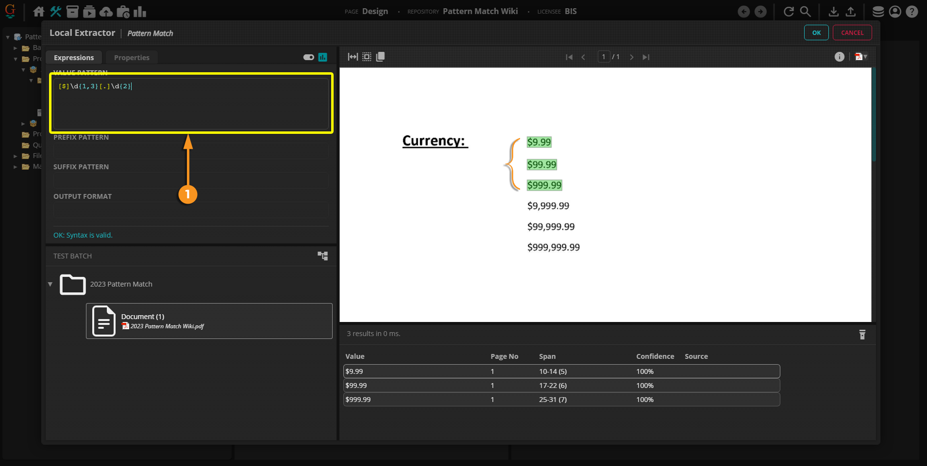 2. In the Value Pattern box, enter the regex pattern for the text you wish to extract.