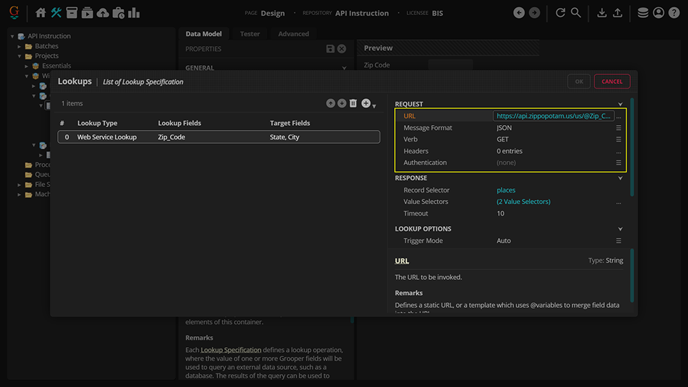 Below is a brief guide on how to access a Web Service Lookup in Grooper, as well as a quick glance at its components.