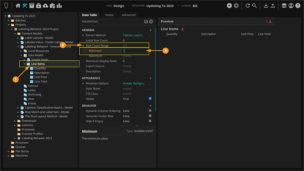 With the Minimum Row Count Range set to "(none)" or zero, we were essentially telling Grooper that there may or may not be a table on the document. A table cannot have zero rows. Since we're telling Grooper that the table is not reliable to the Document Type it will not use it for classification purposes.