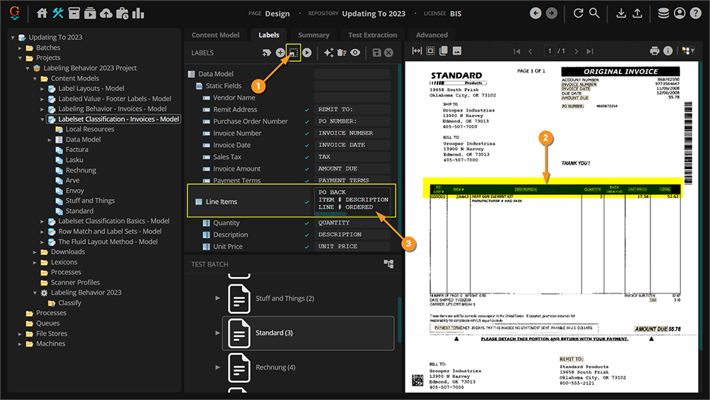 To make the best use of this functionality, Data Element Overrides are typically necessary. Indeed, because the Label Set approach is more templated in nature, Data Element Overrides can be a useful tool to fine tune extraction for one specific Document Type. In this section, we will use the "Purchase Order Number" Data Field of our "Labeling Behavior - Invoices - Model" Content Model to demonstrate this.