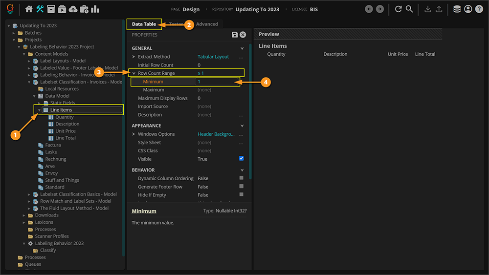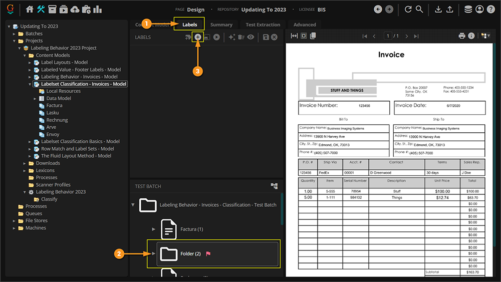 1. Here, we have selected the "Labeling Behavior - Invoices - Model" Content Model.