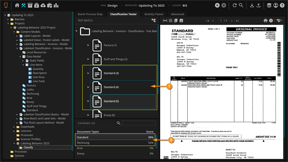 Furthermore, you can even tell the difference between two very closely related documents using labels as well. For example, two different invoices from two different vendors may share some similarity in the labels they use to detail information. But there will be some differences as well. These differences can be useful identifiers to distinguish one from the other. Put all together, labels can act as a thumbprint Grooper can use to classify a document as one Document Type or another.