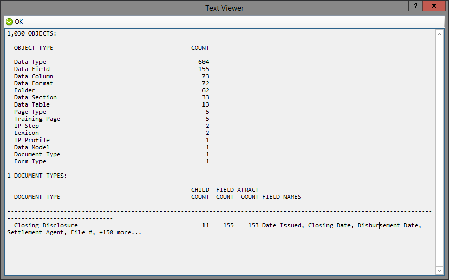 The output is a simple Text Viewer giving a count of all the appropriate child objects. | The output is a simple Text Viewer giving a count of all the appropriate child objects. | ||