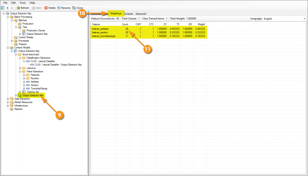 This is a good example of a real-world setup and how you'd want to leave it moving forward, but for sake of simplicity and to illustrate the training results more clearly, go ahead and clear the Referenced Extractors property.