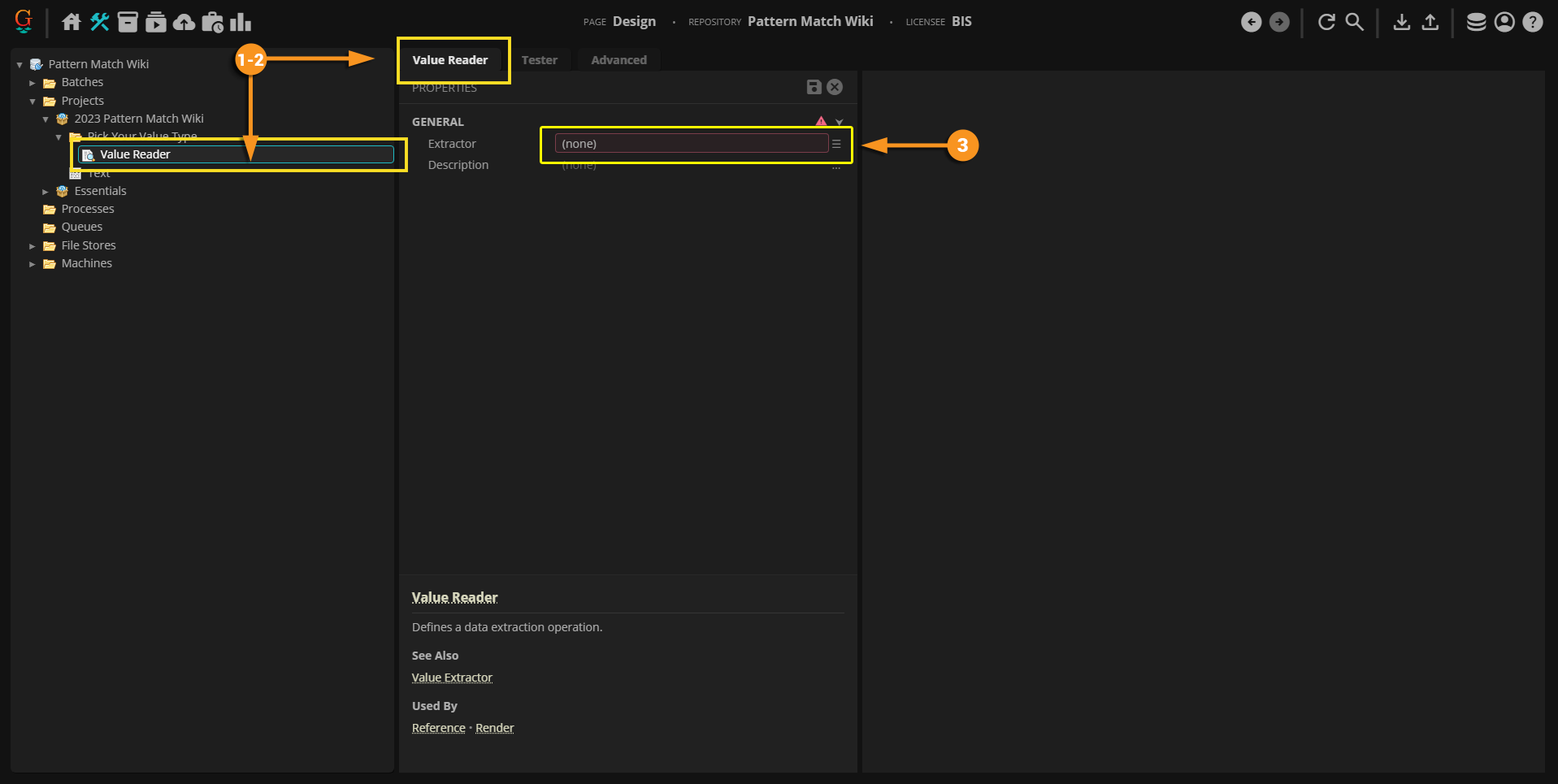 • Note the three tabs, "Value Reader", "Tester", and "Advanced".