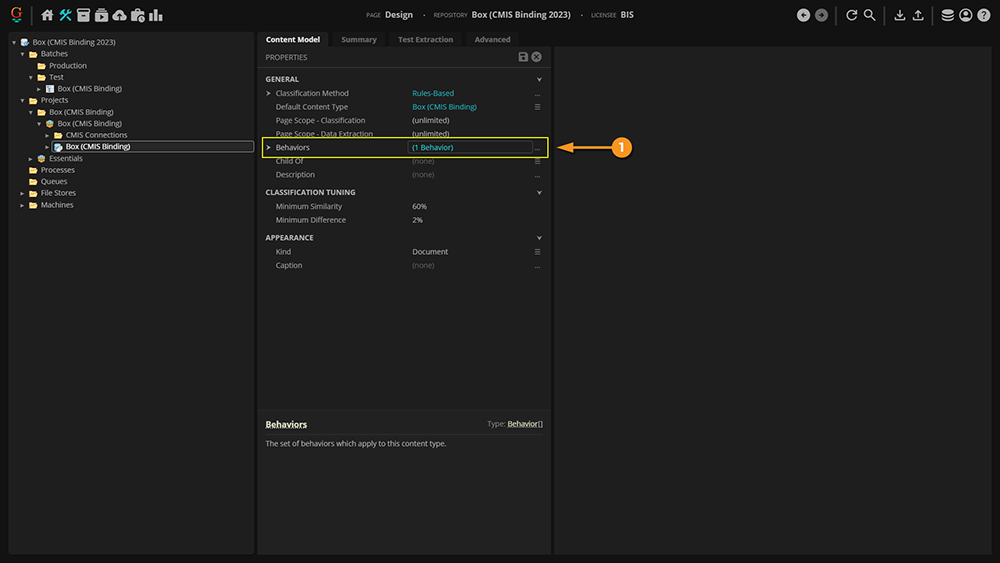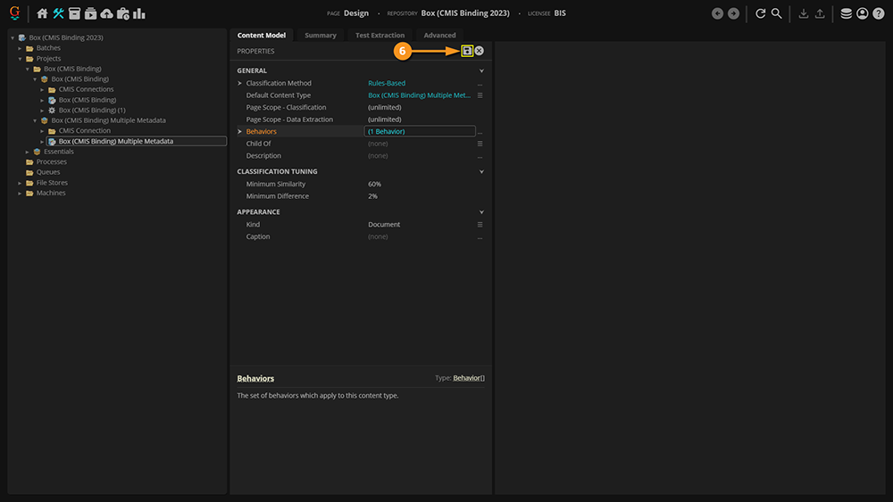 1. Remaining on the Content Model tab of the Content Model, select Behaviors once more.