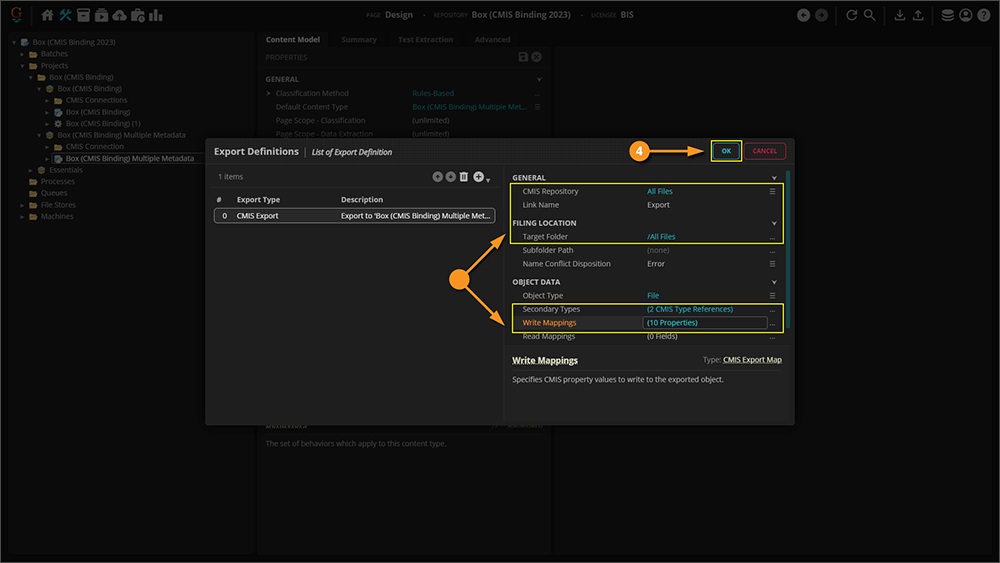 Now the Export Behavior(s) have been mapped, it's time to export the document to Box.