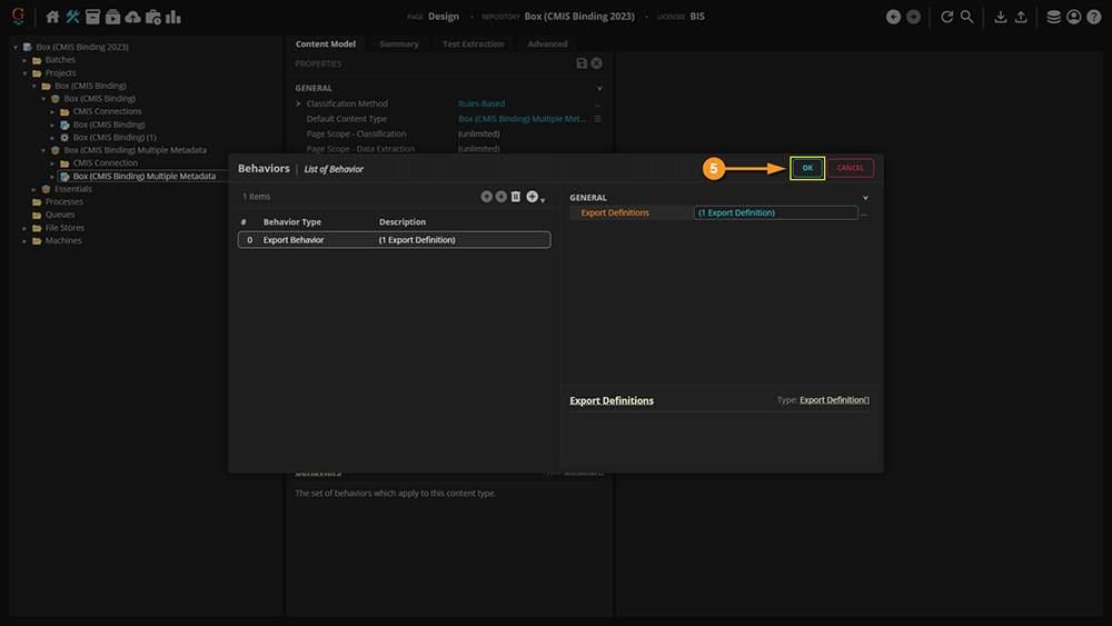 Much of the steps leading up to constructing your Export Behavior and Definition are the same up to this point. If you would like to see how to configure your Content Model for export, click here: #Configuring a Basic Box Export.