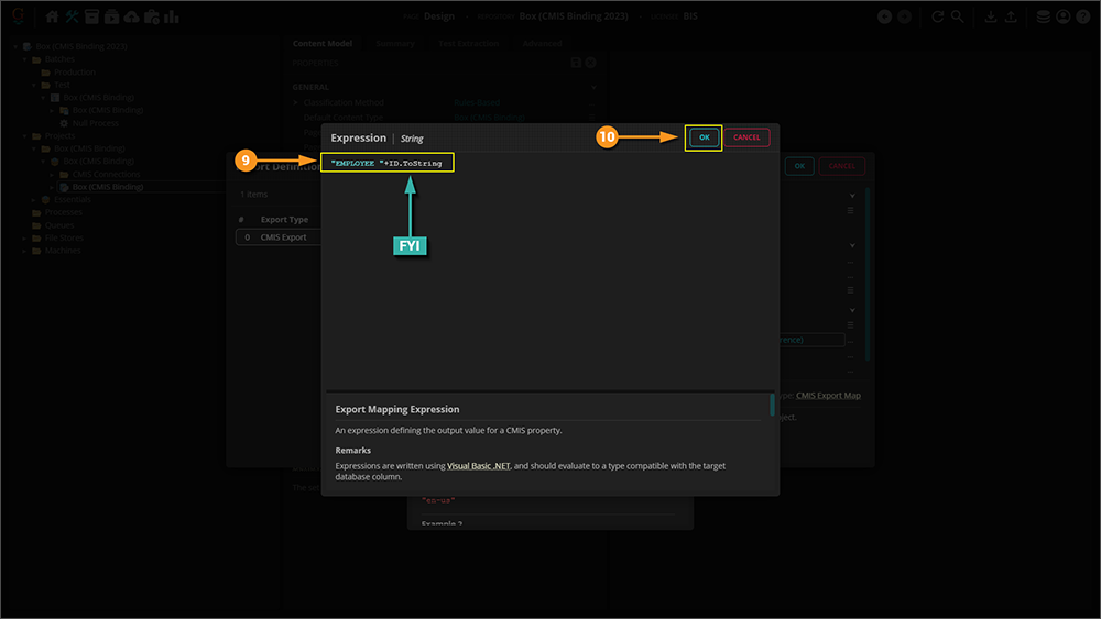 Since the ID is specified as a Decimal format in Grooper, we've added the .ToString extension so it can be exported as text.