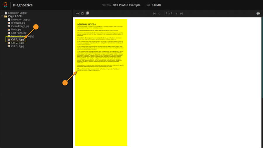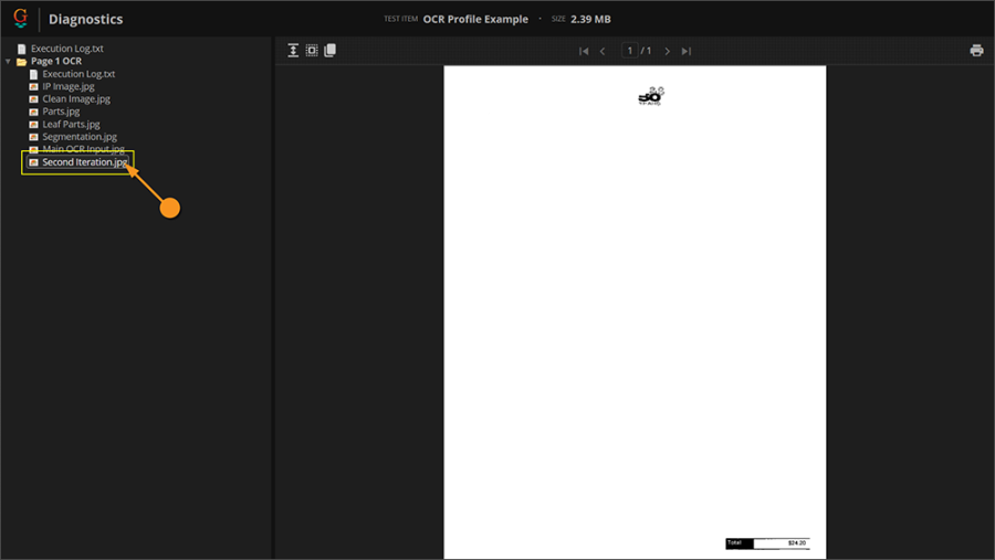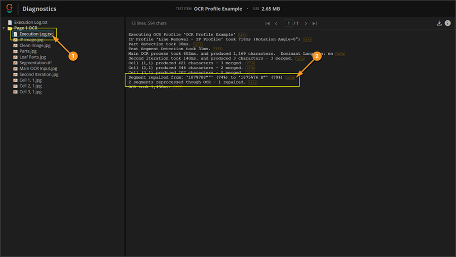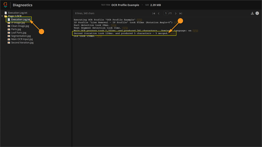 More information about the operation can also be viewed in the "Execution Log" such as the time the second iteration took to run and how many characters were merged with the full page OCR.