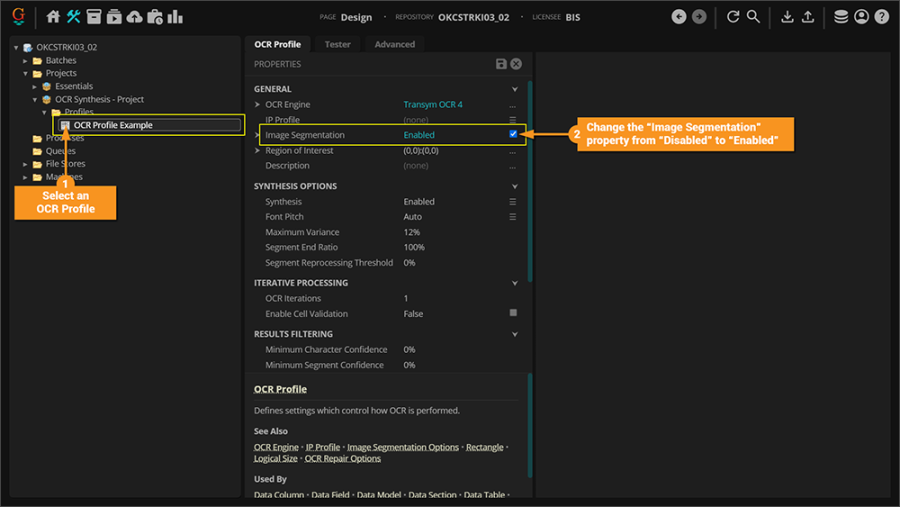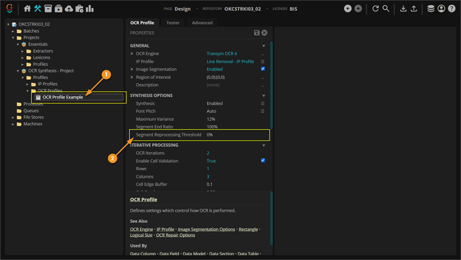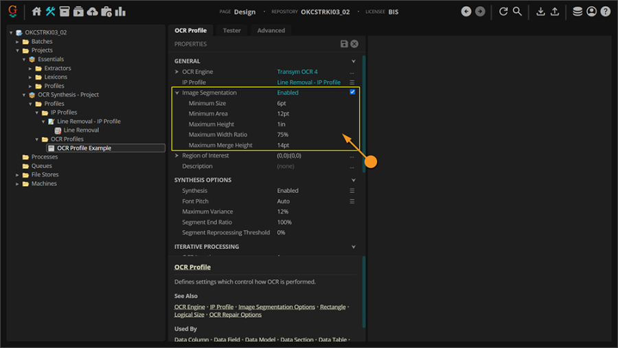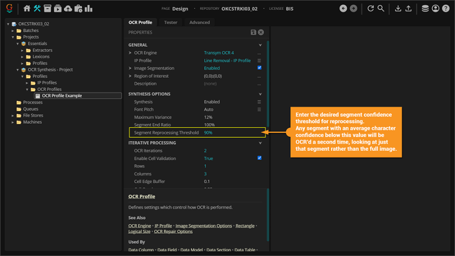 With Synthesis enabled, Segment Reprocessing is a configurable property on OCR Profiles.
