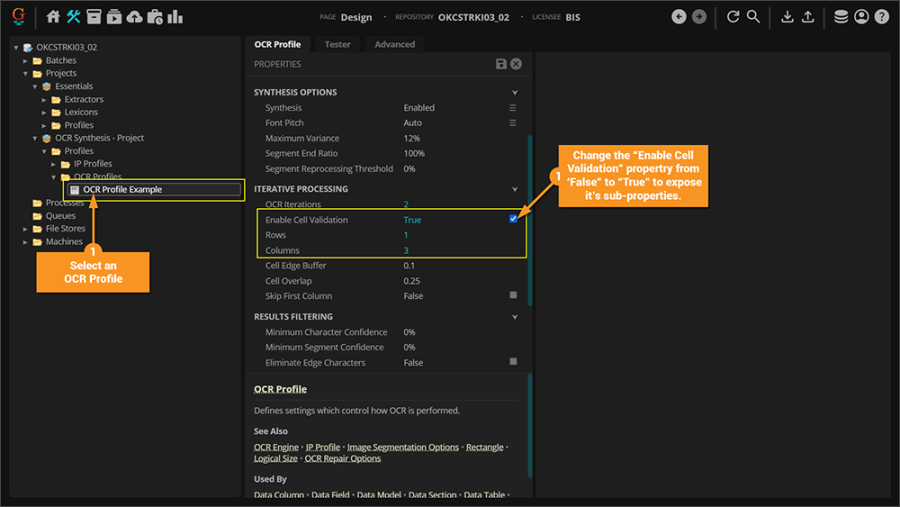 With Synthesis enabled, Cell Validation is a configurable property on OCR Profiles.