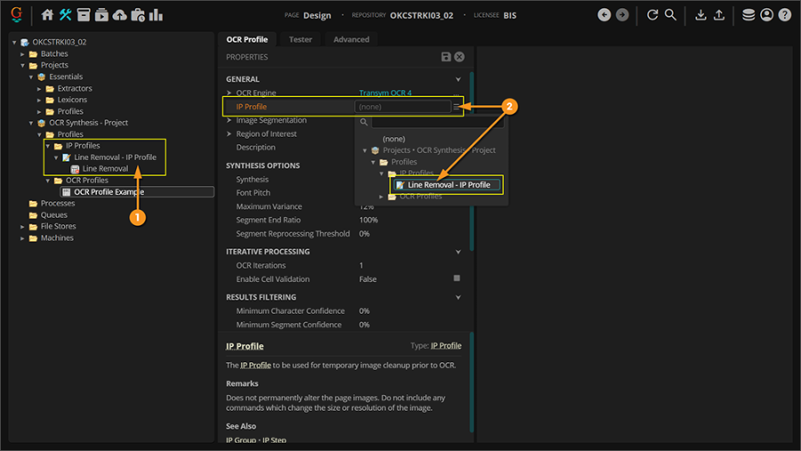 - ... and set the "IP Profile" property on the "OCR Profile" to point at the created "IP Profile".