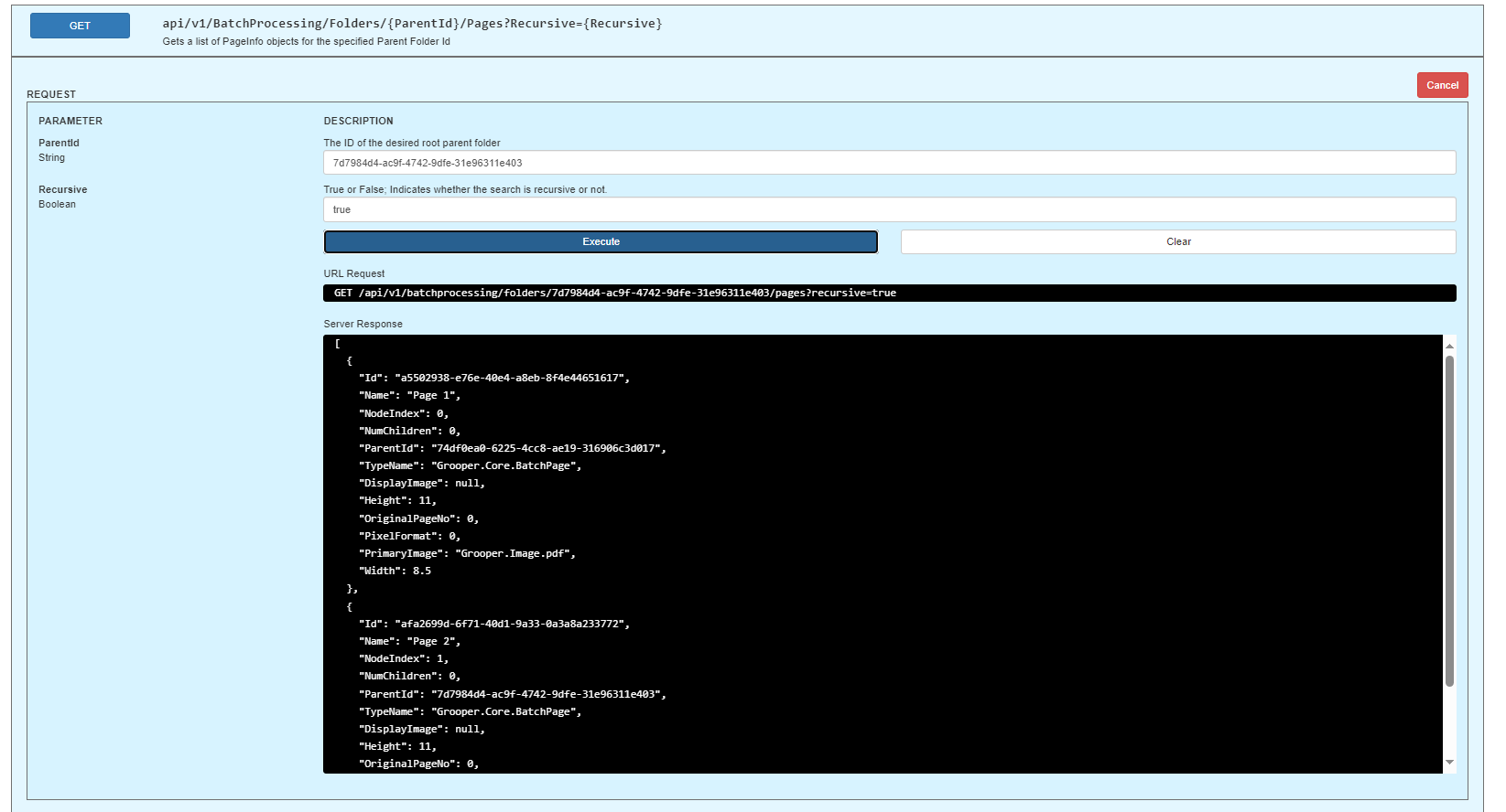 GET /api/v1/BatchProcessing/Folders/{ParentId}/Pages?Recursive={Recursive}