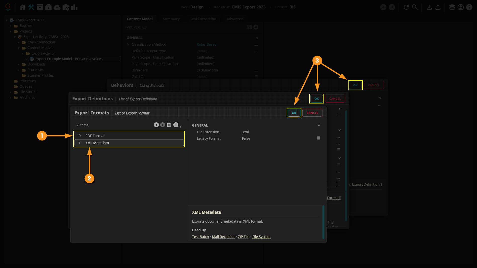 • Furthermore, we can have both the Export Behavior configured on the parent Content Model and the Export Behavior configured on a child Content Type (such as our "Purchase Order" Document Type). The child Content Type's Export Behavior will supersede any parent Content Type's Export Behavior.