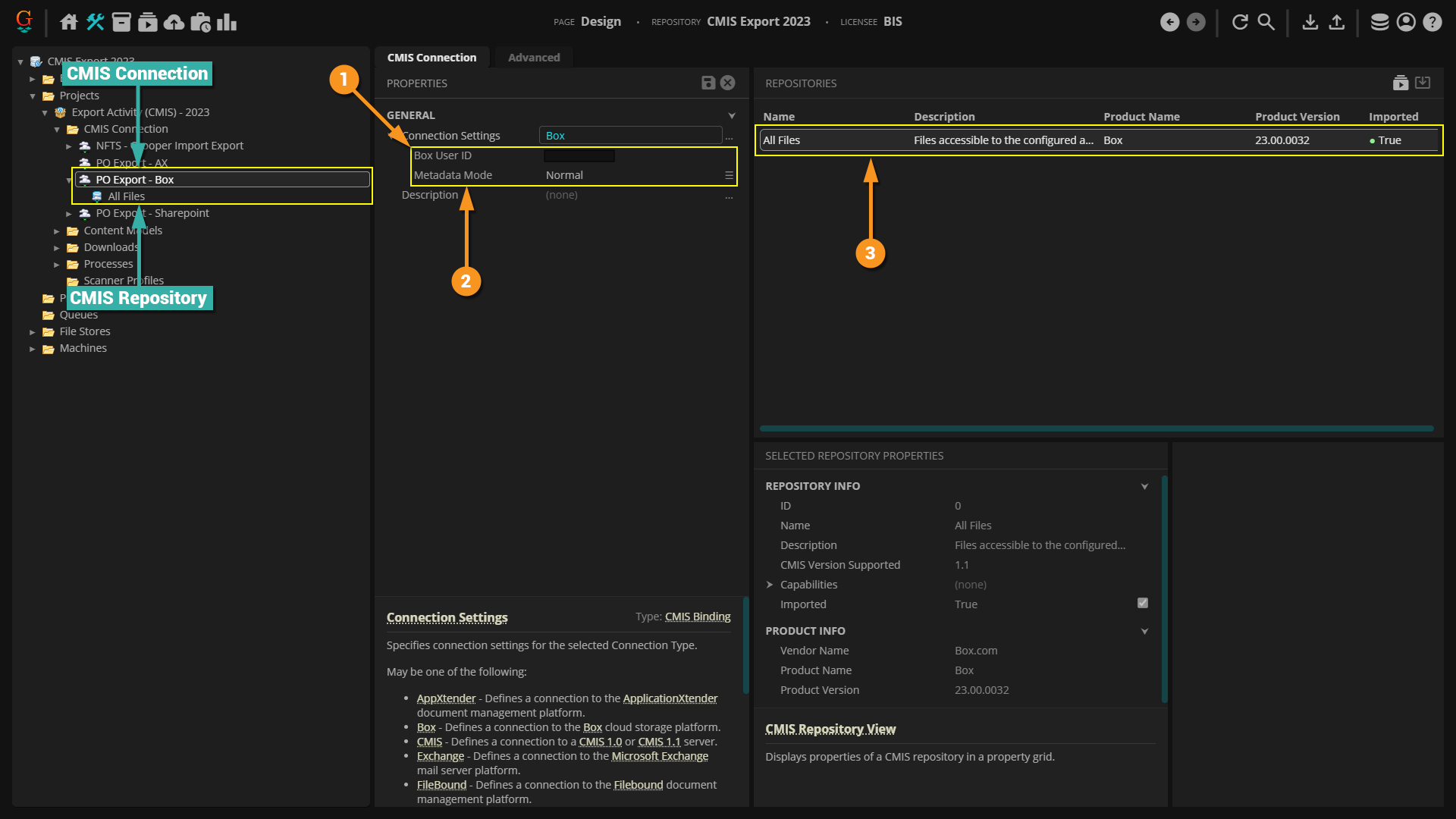 1. For the CMIS Repository, we've selected our Box CMIS Repository.