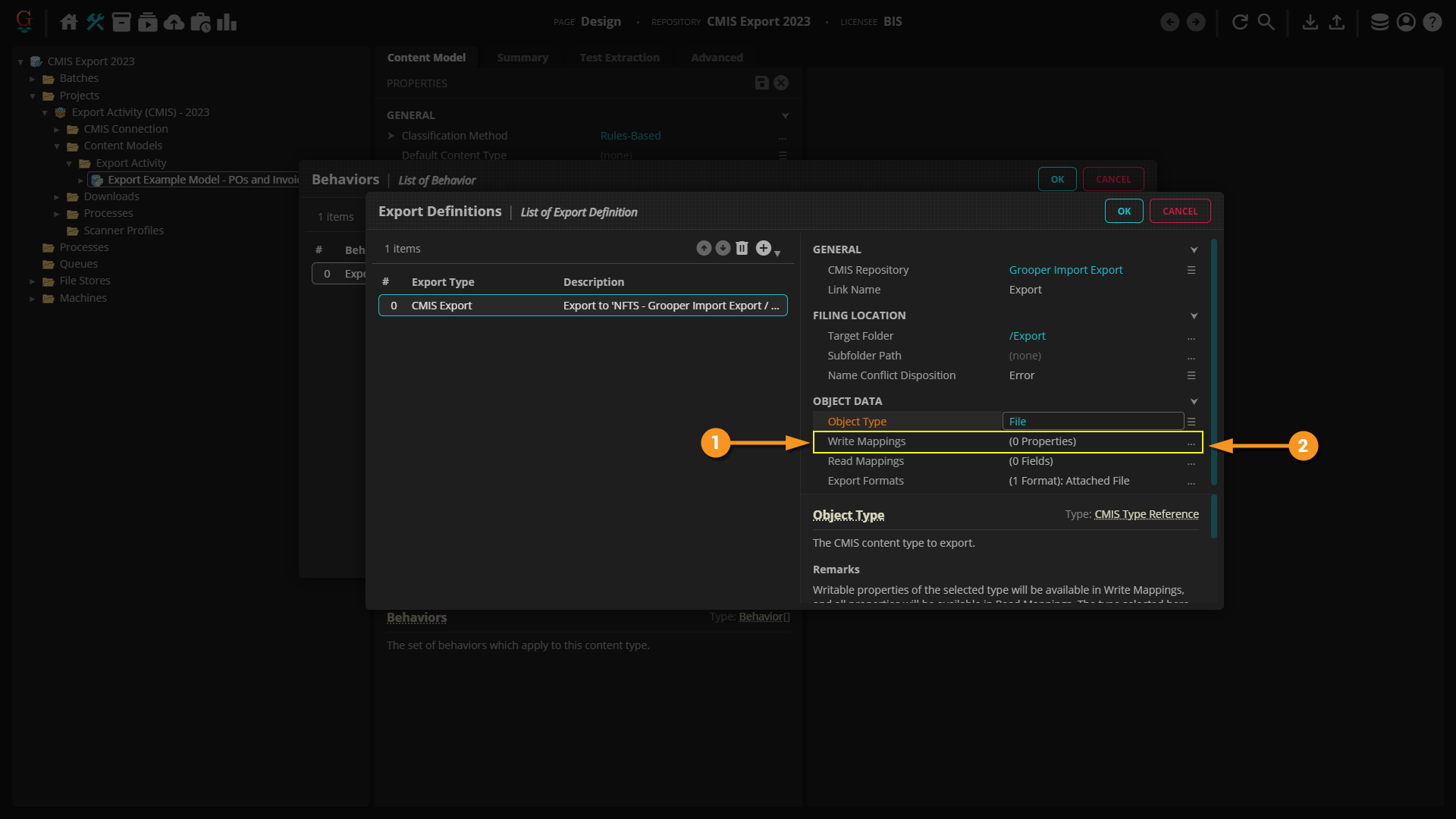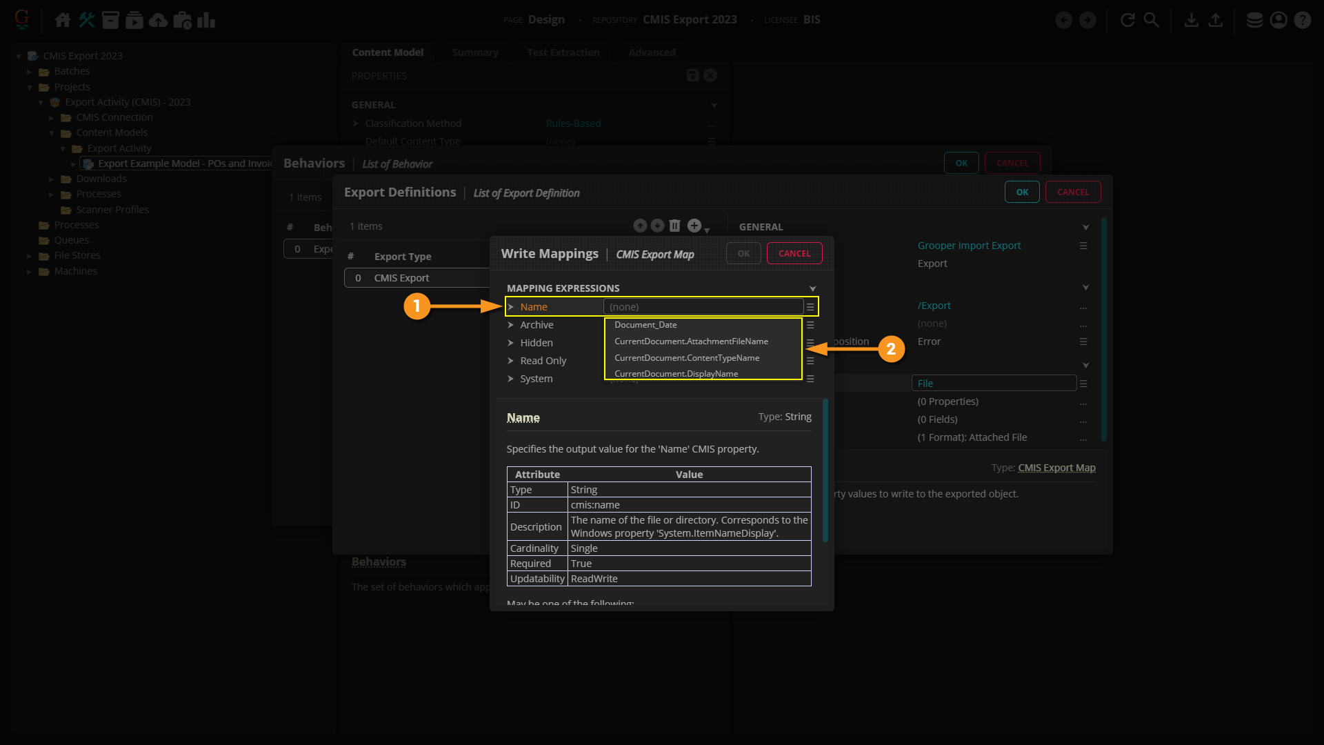 Arguably the most important part of data mapping a CMIS Export is choosing the right scope for your Export Behavior. This will determine which Data Elements are available for mapping.