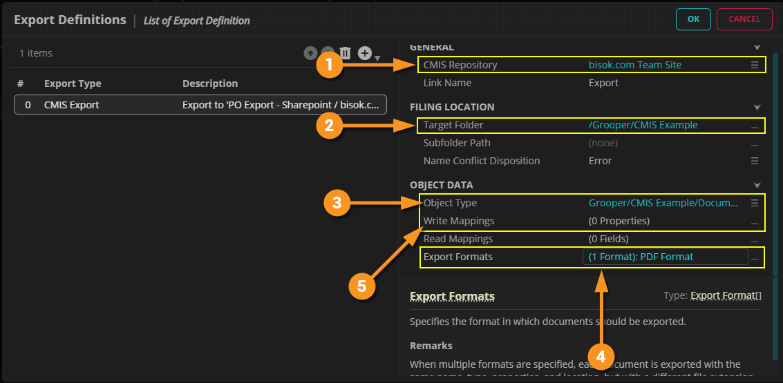 5. Here, we've added a CMIS Export to the Export Definitions list.