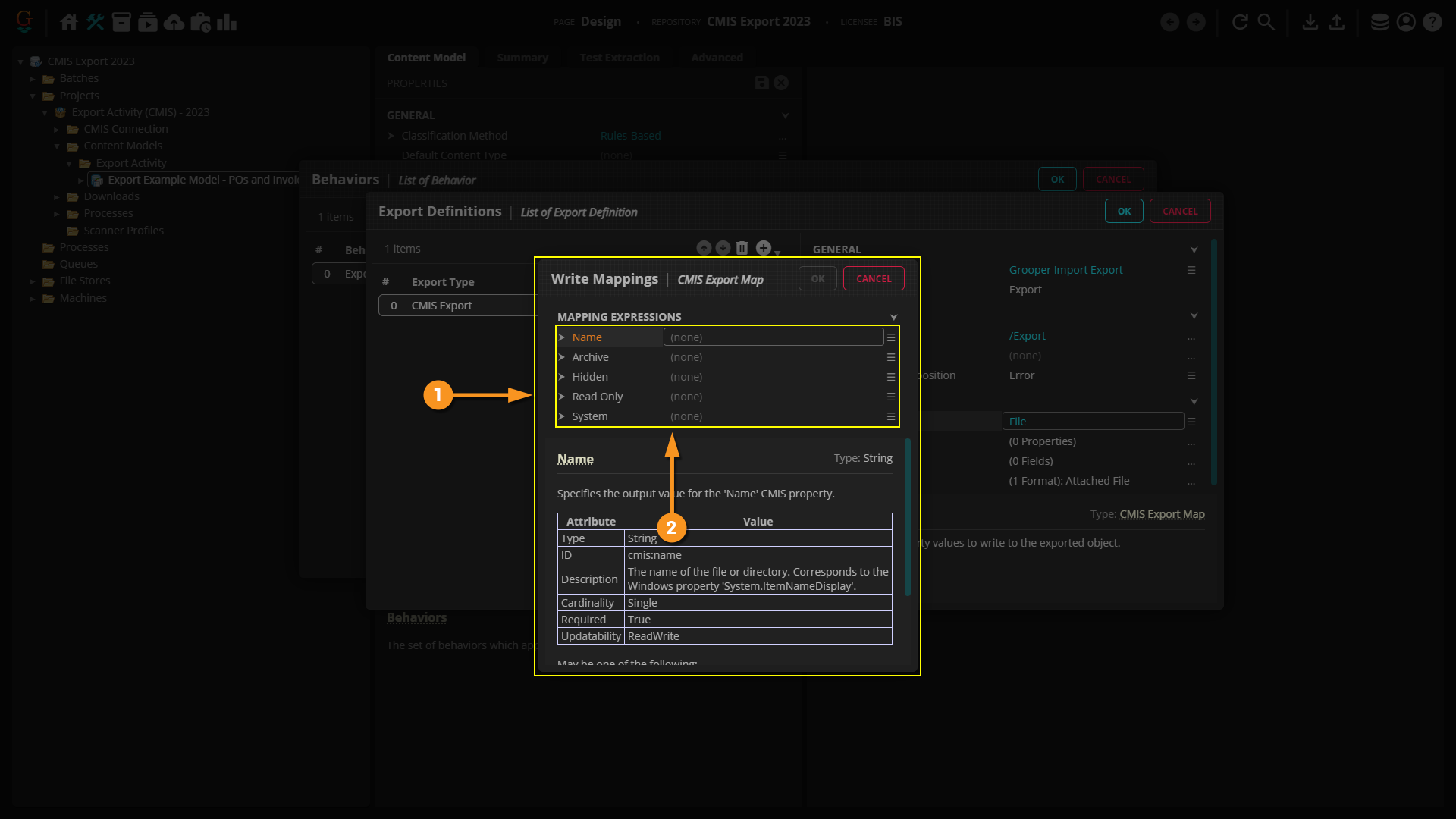 We will use the Write Mappings property of CMIS Export to export this data Grooper extracts to these metadata locations.