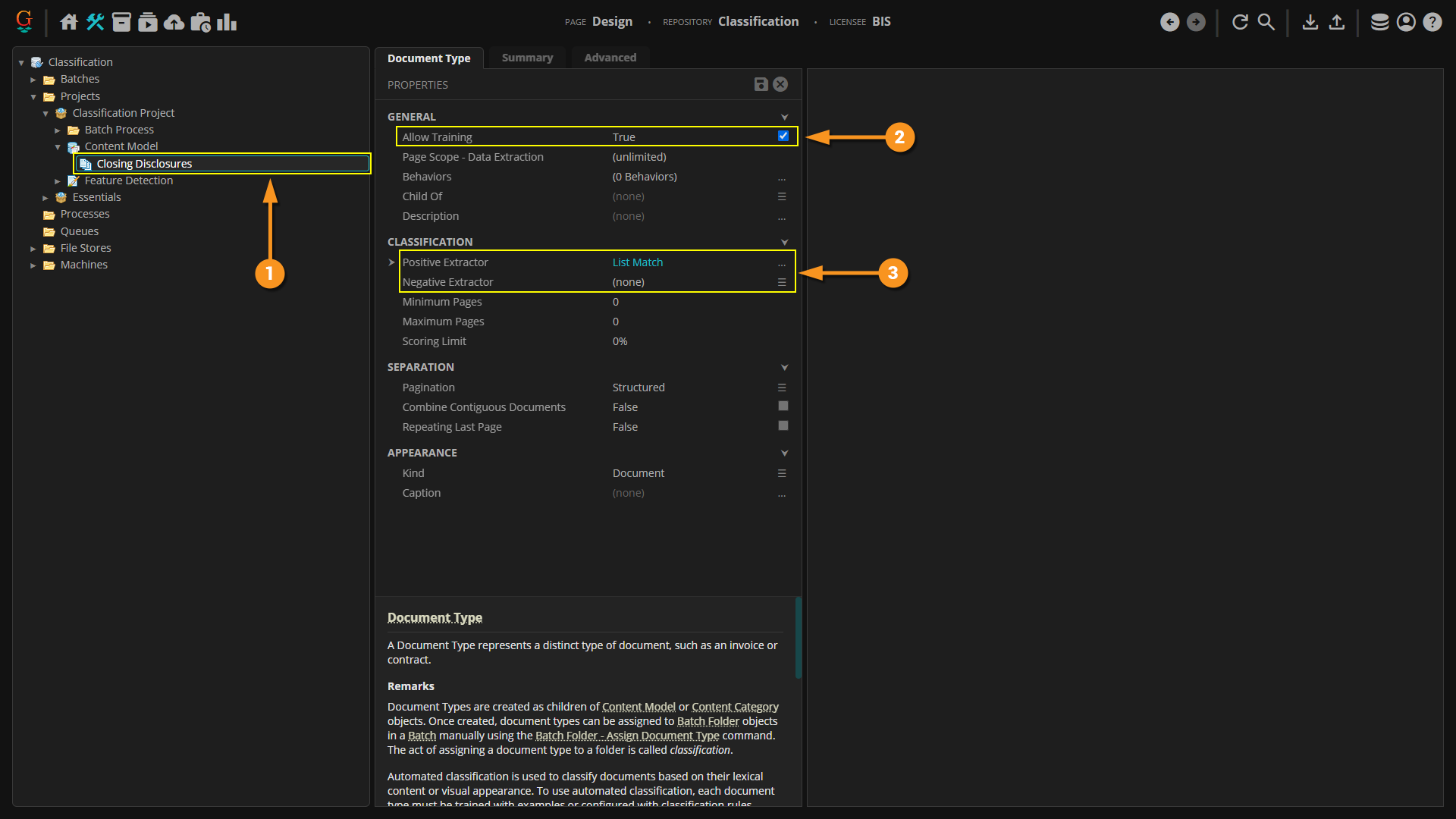1. Another important tenet of classification that is relied upon by both Grooper and the Content Model is the Document Type. This is a child object of the Content Model that is used to identify certain documents through positive extractors.