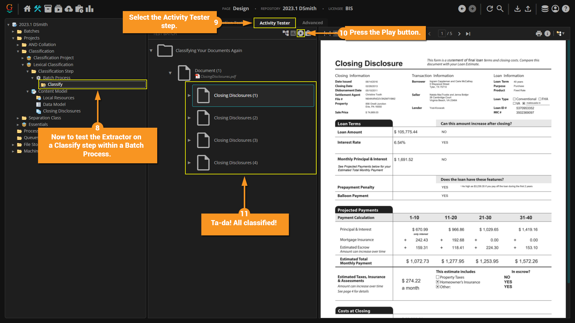 Classification is then performed using the Classify activity, using the trained examples and Lexical property configuration on a Content Model.