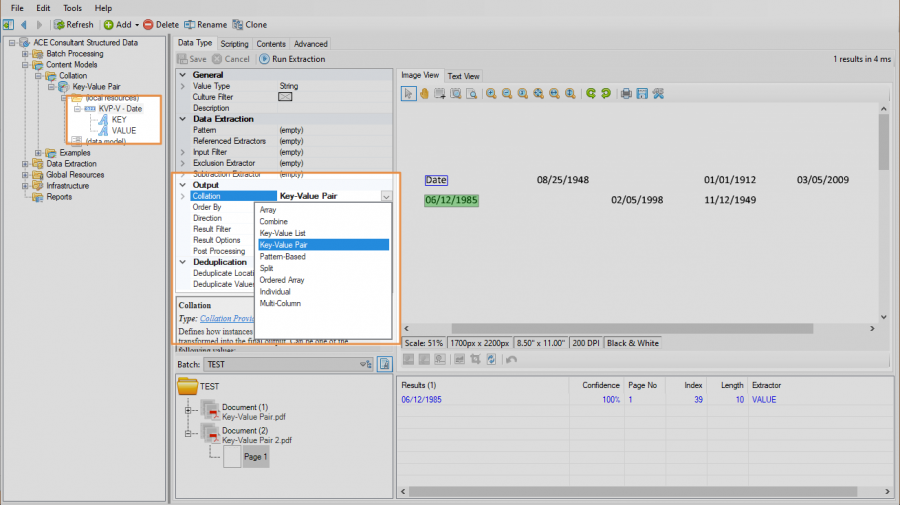Key-Value Pair collation is one of the most commonly used collation providers. It provides an excellent way to extract data when a value exists next to a label on a document, whether next to it horizontally, vertically, or even in a text flow.