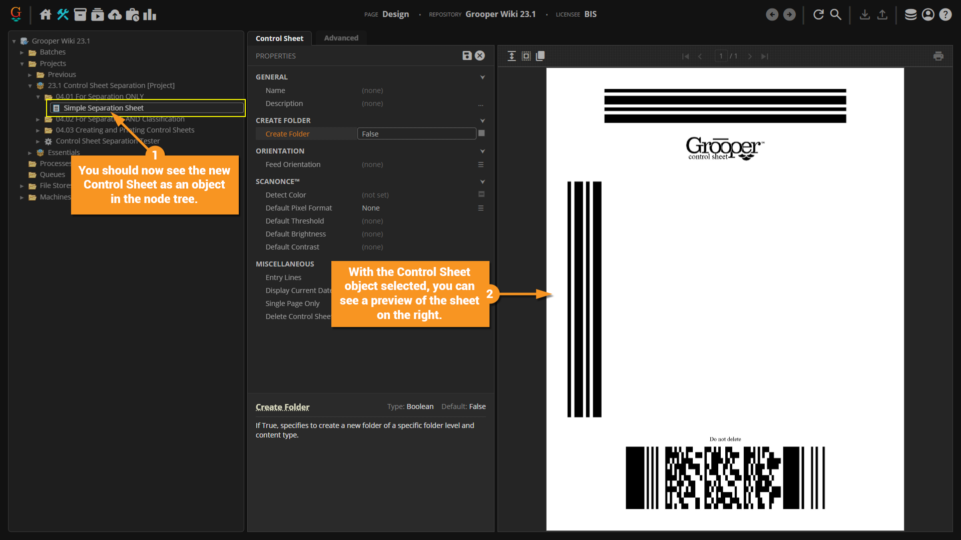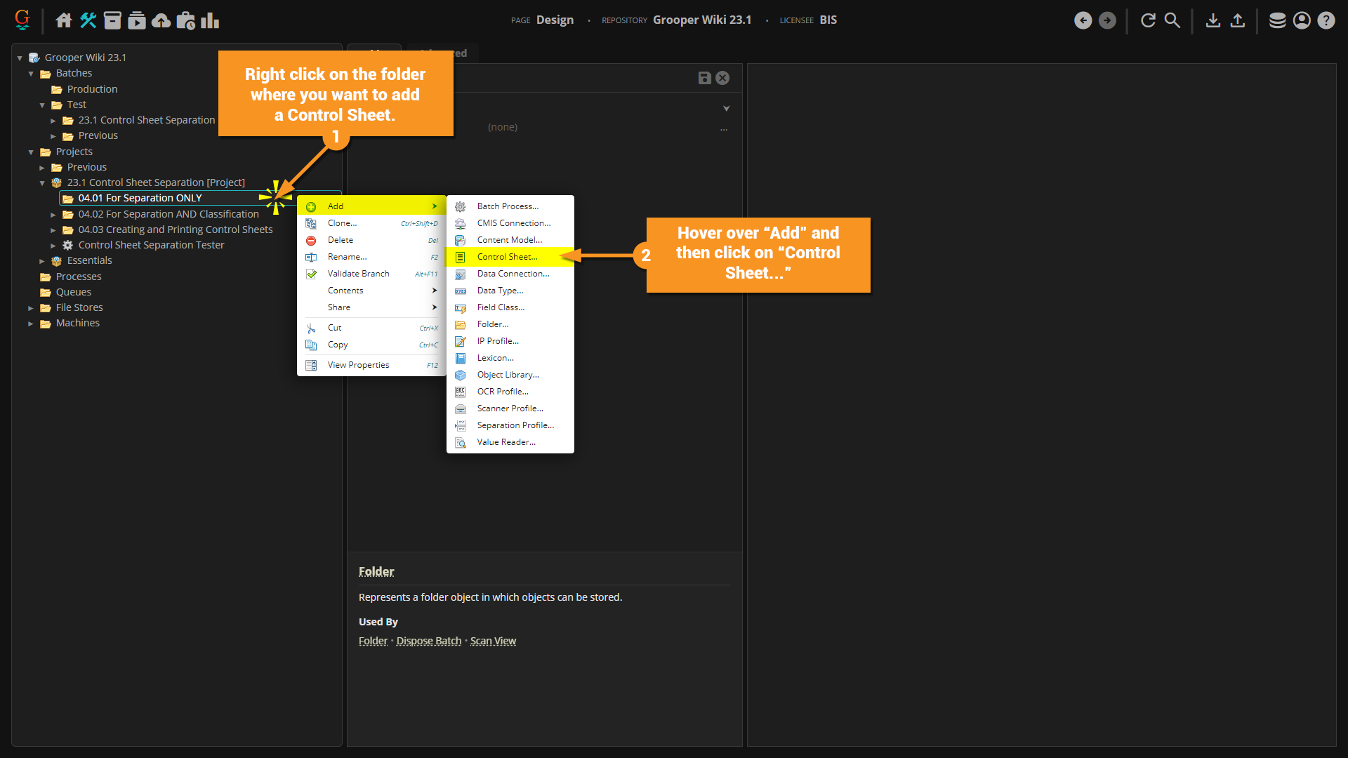 2. The Document Type should appear on the Control Sheet under the folder level indicating where Grooper will create the new folder.