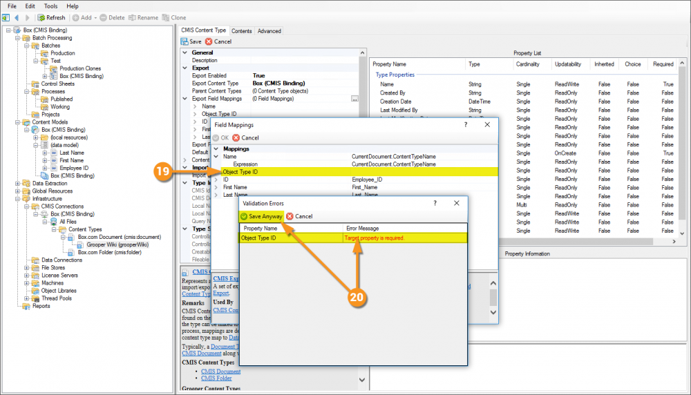 The Name and Object Type ID fields are considered required by Box, and Grooper will pass an error if they're not mapped. I'm choosing to not map Object Type ID and deal with the error later.