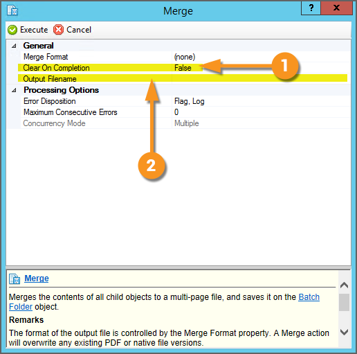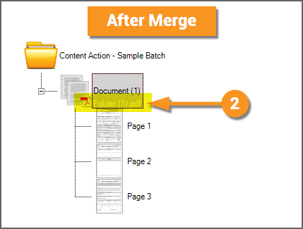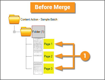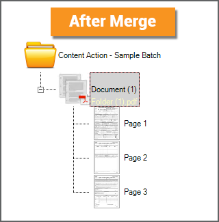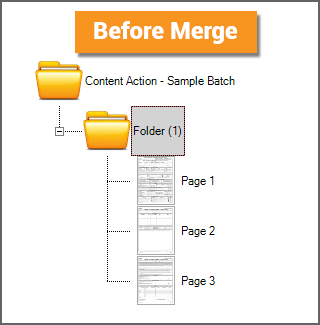 The Merge Action will create a multipage PDF or TIF file, stored on the Batch Folder, created from the Batch Folder's child objects. Some people think of the Merge Action as Split in reverse. Whereas Split creates child Batch Page objects out of a PDF or TIF file on the parent document folder, Merge does the opposite. Merge creates a PDF or TIF file, stored on the parent document folder, out of child Batch Page objects. Note: A PDF or TIF file will be merged from all child content for a Batch Folder. A single file will be created even if the the Batch Folder has its own subfolders with their own child pages. One common use of the Merge action is to create a single PDF from an email, merging the email message text file with an attachment document (often itself a PDF file). |