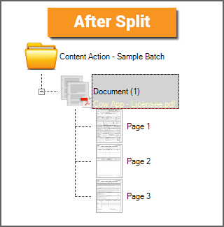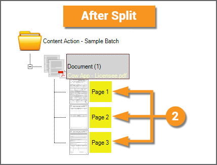 The Split Action is the most commonly used functionality for the Content Action activity. It will split out the pages of an imported multipage PDF or TIF file. When PDF files are imported into a new Batch, a Batch Folder object is created for each multipage PDF file imported. The PDF file is stored as the "native file version" of the Batch Folder. It lives in the file store location associated with the Batch Folder (or in layman's terms it lives "on the document folder"). However, what if Grooper needs to process each page instead of the full document? It needs a page-level object to do page-level processing. This is what the Split Action accomplishes. It takes that native file living on the Batch Folder and creates child Batch Page objects from it, one Batch Page object for each page in the native multipage file. |