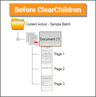The ClearChildren Action is a destructive action. Whereas the Split action creates objects, the ClearChildren action deletes them. When applied to a Batch Folder, ClearChildren will delete all child pages and folders below it. Furthermore, it deletes all child objects. If you have a hierarchy of Batch Folder and Batch Pages with their own child Batch Folders and Batch Pages, all of them are deleted. Not just the Batch Pages. Not just the Batch Pages at the first child level. ClearChildren clears all children. |