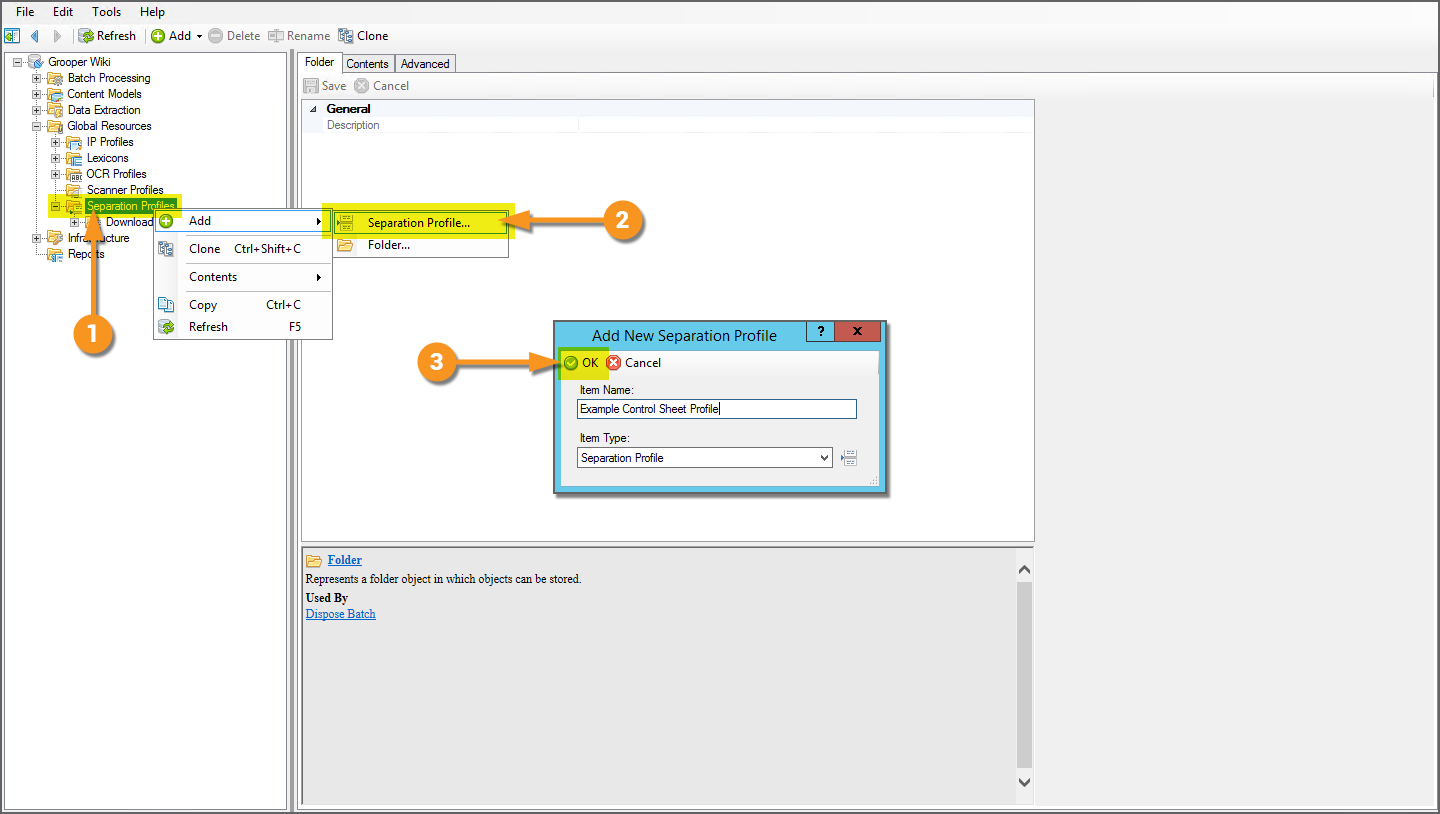 1. Add a new Separation Profile by right-clicking the Separation Profiles folder of the Global Resources folder.