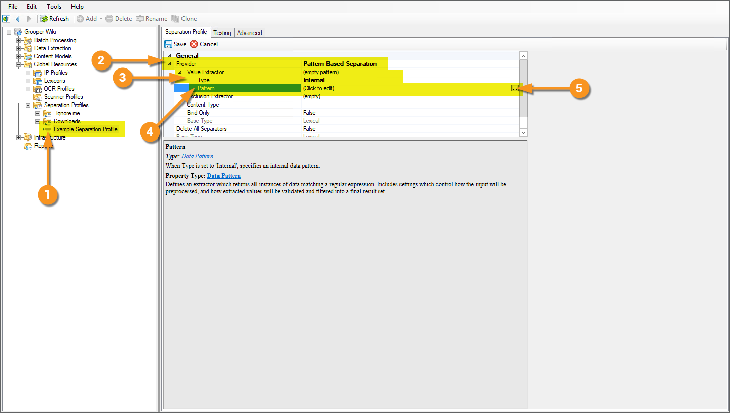 • When choosing the Internal option for various extractors in a property panel and configuring its Pattern property