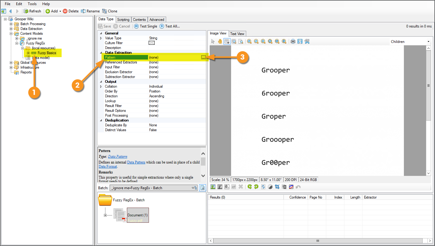 However, OCR results are imperfect. Characters are recognized as different from what is on the page. Spaces get inserted or removed between characters. Even with Image Processing and OCR Synthesis software as good as Grooper has, you can't assume 100% accurate OCR results on every document. And, even if the OCR results are one tiny character off, the pattern will fail to produce a match.