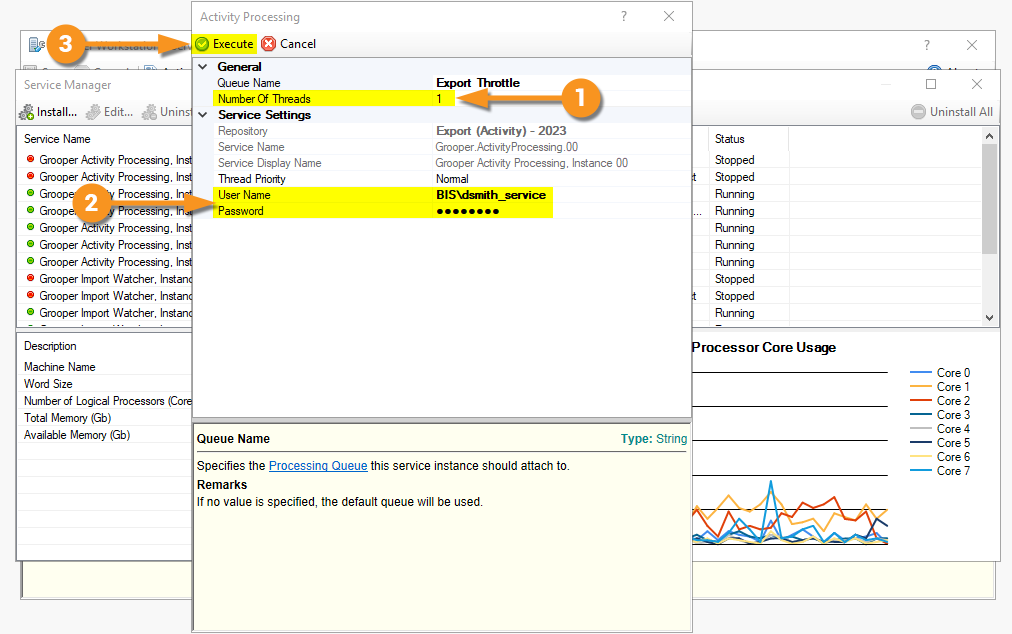 1. The Number Of Threads property allows you to define how many of your system's processing threads should be utilized by the Activity Processing service.