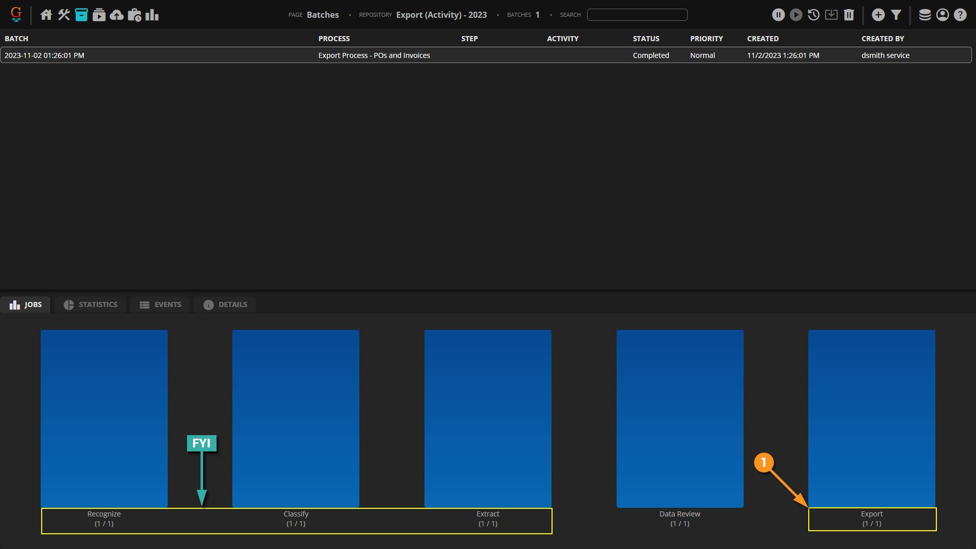 1. Upon processing a Batch the Export step in our Batch Process will be executed by the Activity Processing Service.