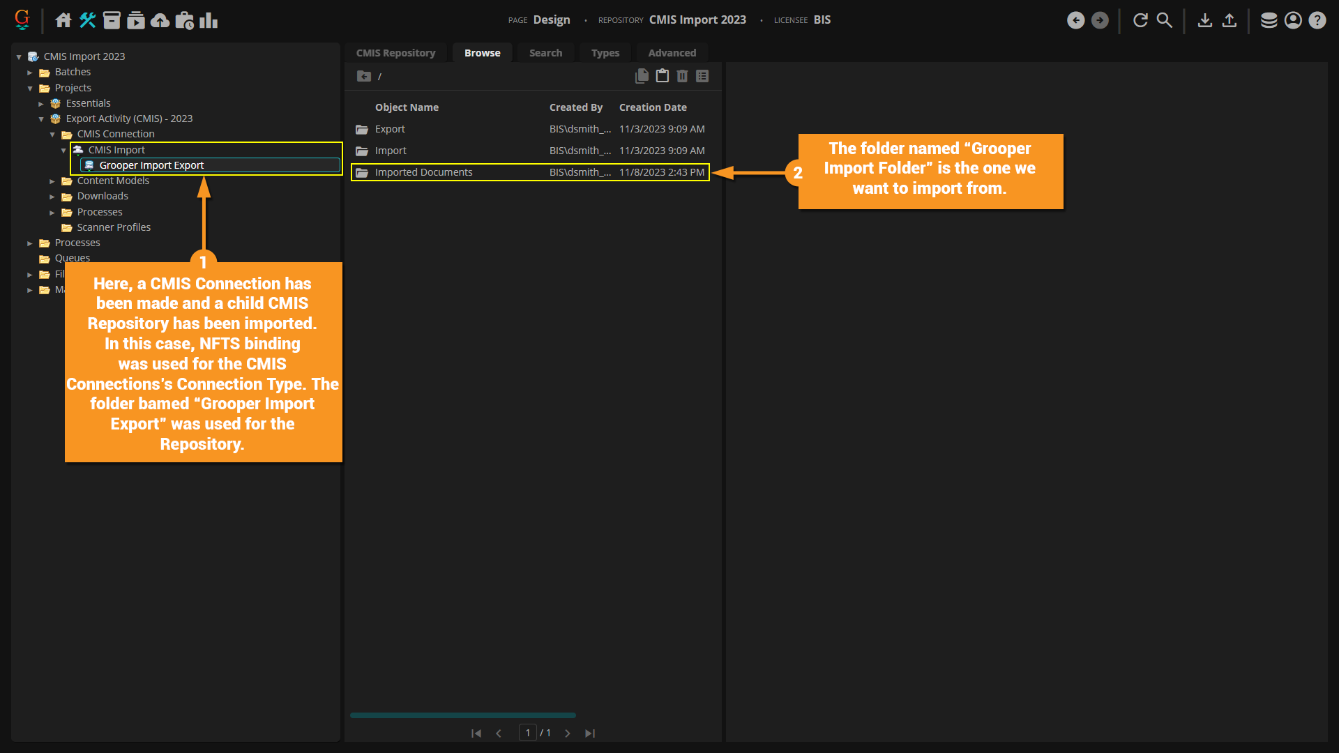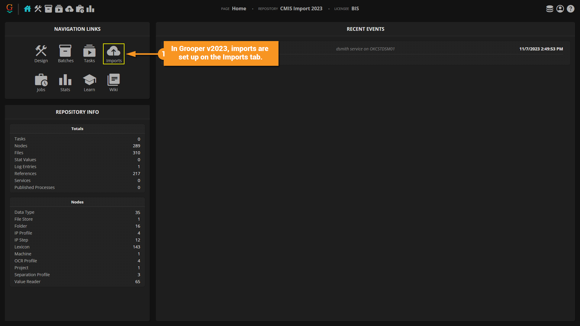 • "Importing" here is more like importing a reference (or bringing the repository into a framework Grooper can use).