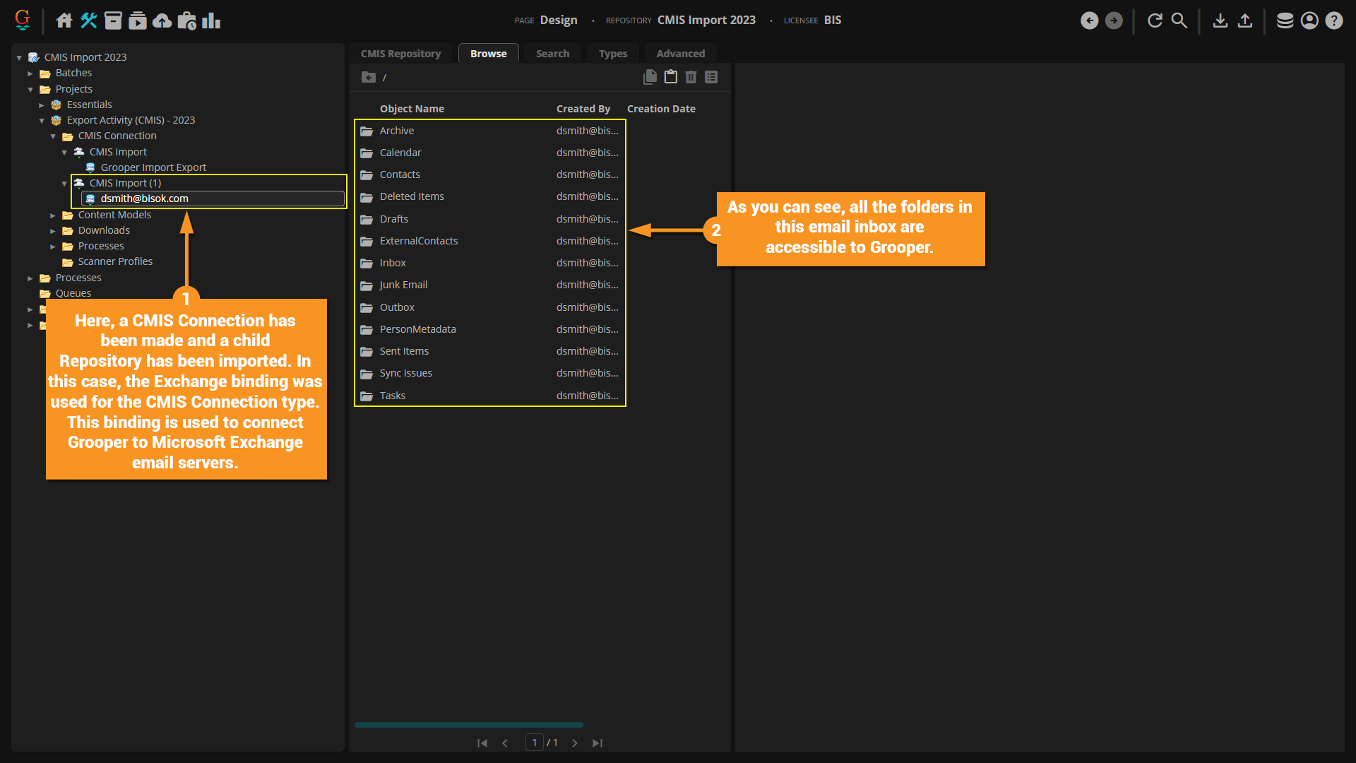 • Upon importing the CMIS Repository, Grooper has full file access to that location in the storage platform.