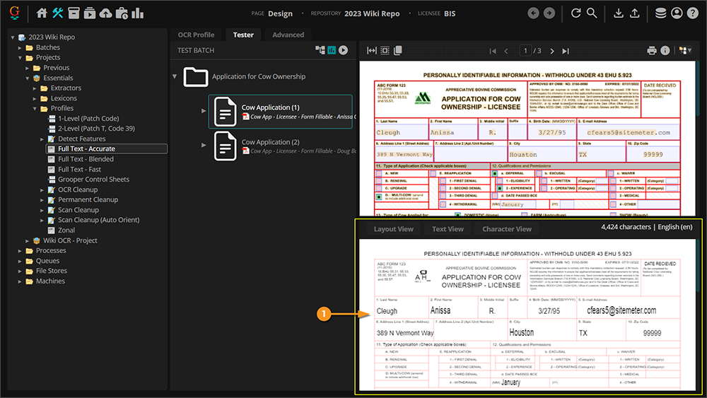 library_books OCR Profiles store configuration settings for optical character recognition (OCR). They are used by the Recognize activity to convert images of text on contract Batch Pages into machine-encoded text. OCR Profiles are highly configurable, allowing fine-grained control over how OCR occurs, how pre-OCR image cleanup occurs, and how Grooper's OCR Synthesis occurs. All this works to the end goal of highly accurate OCR text data, which is used to classify documents, extract data and more.