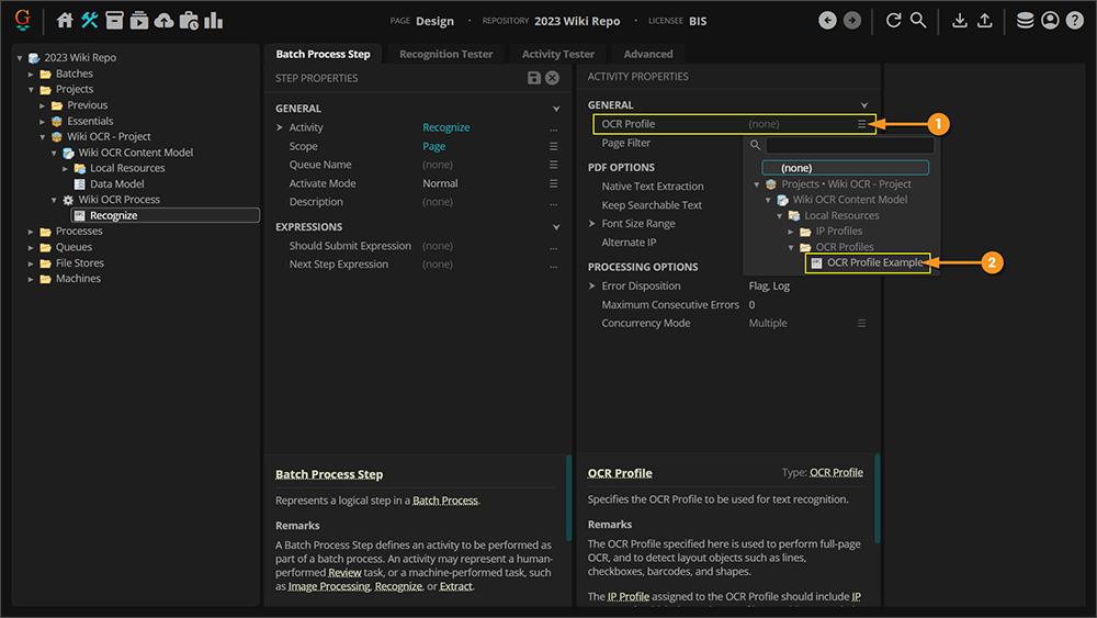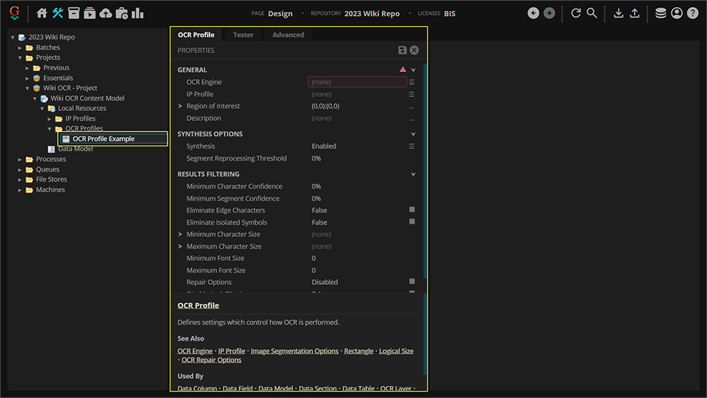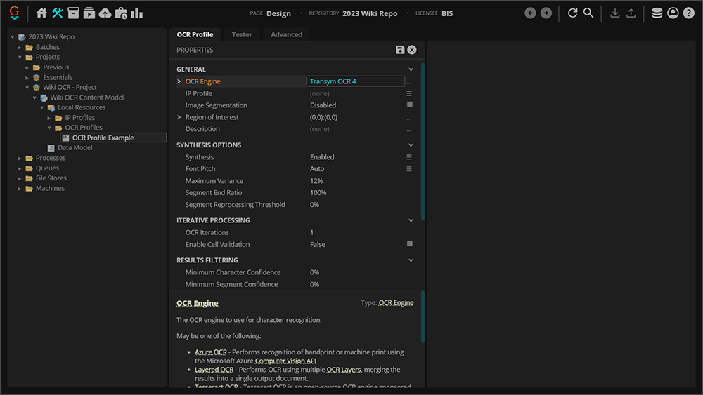 Creating an OCR Profile is fairly straight forward. OCR Profiles may be created and stored in a Content Model's local resources folder.