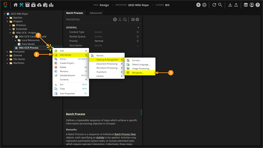 At any point you can get to a Batch Viewer in Grooper, you can execute various activities manually on a page, folder or entire batch. This manual execution of activities is typical when building and testing your solution design in Grooper Design Studio.