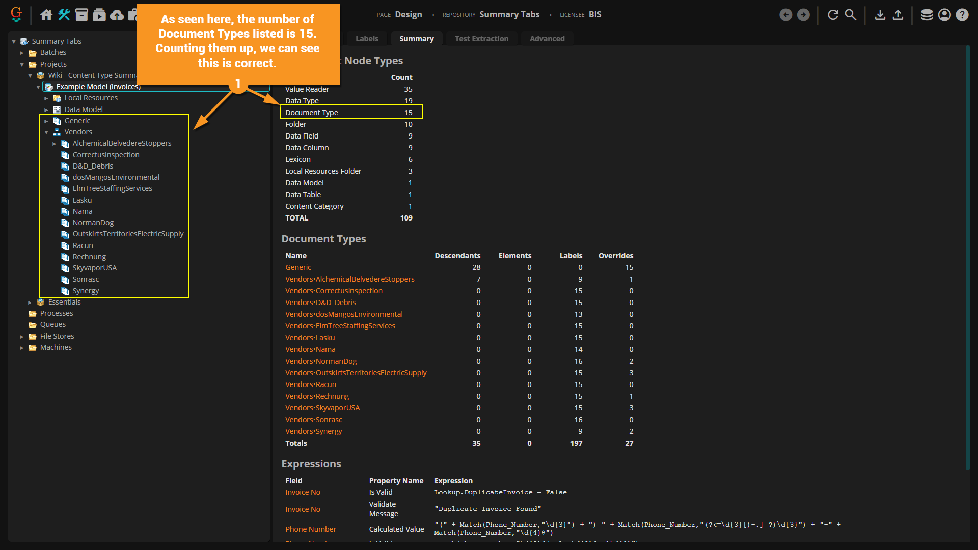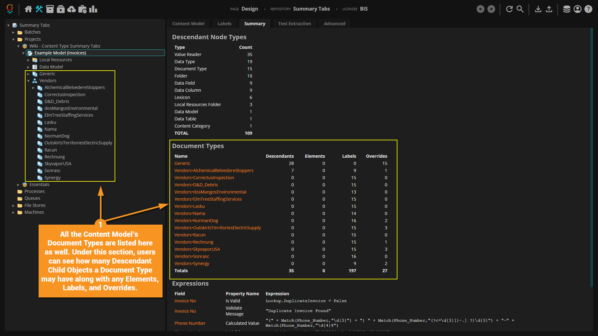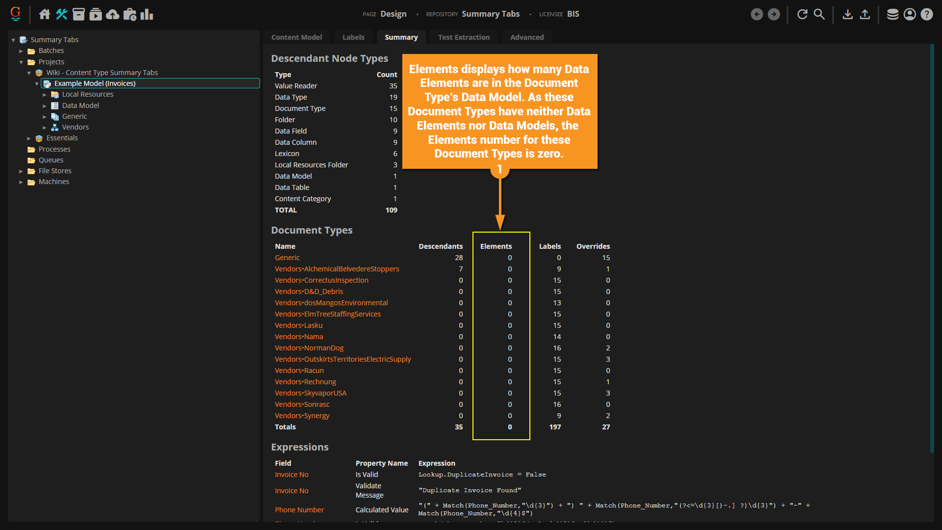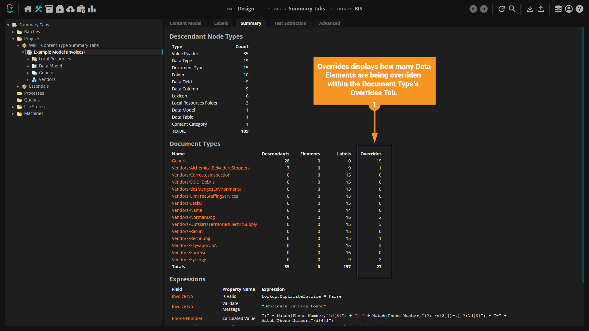 The Summary Tab is a new feature in Grooper 2023. It displays "at-a-glance" information about the selected node and its children.