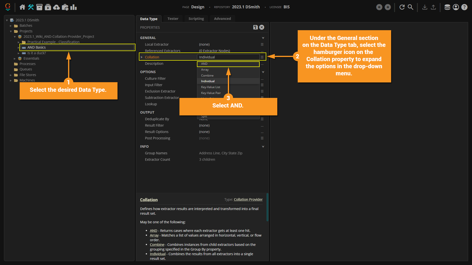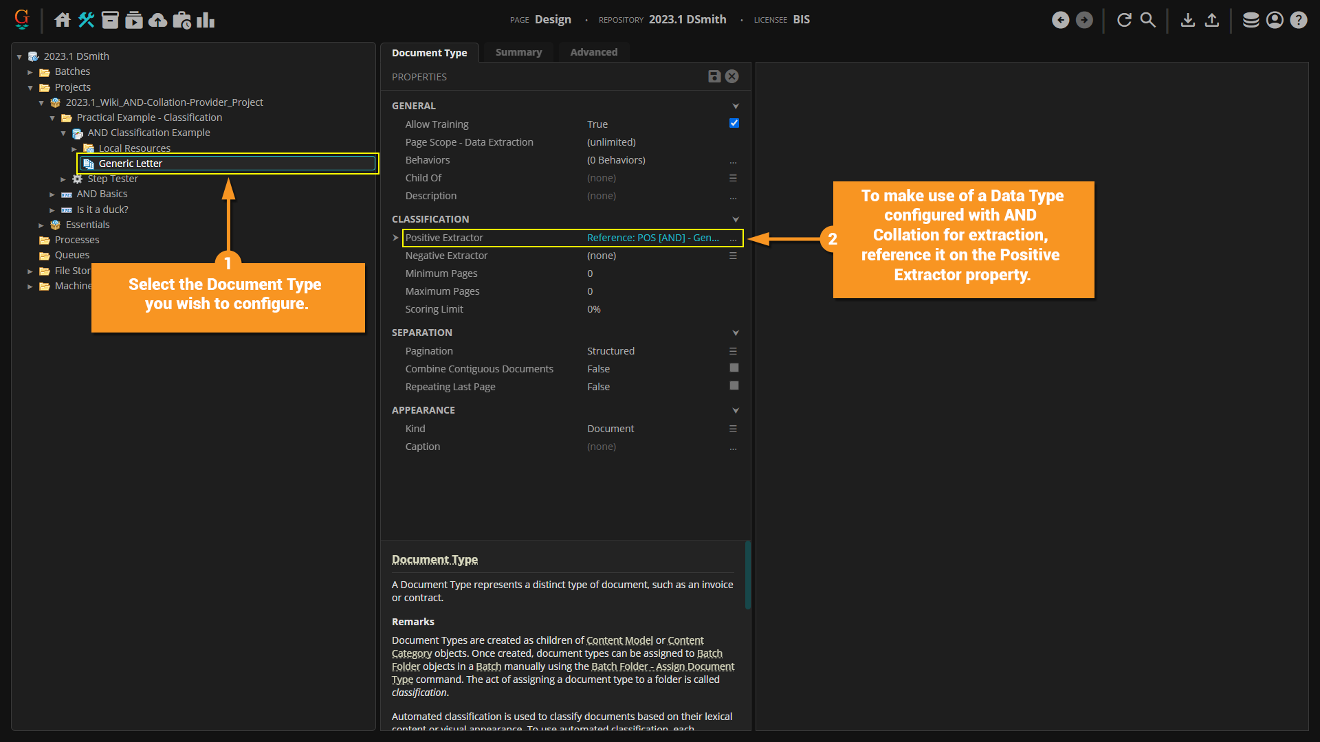 How does Classification play into the AND Collation Provider? Since the AND Collation relies on positive hits to extract data, you can make use of it through the Positive Extractor property on a Document Type. Simply use your configured Collation Provider as a referenced extractor for your Positive Extractor.