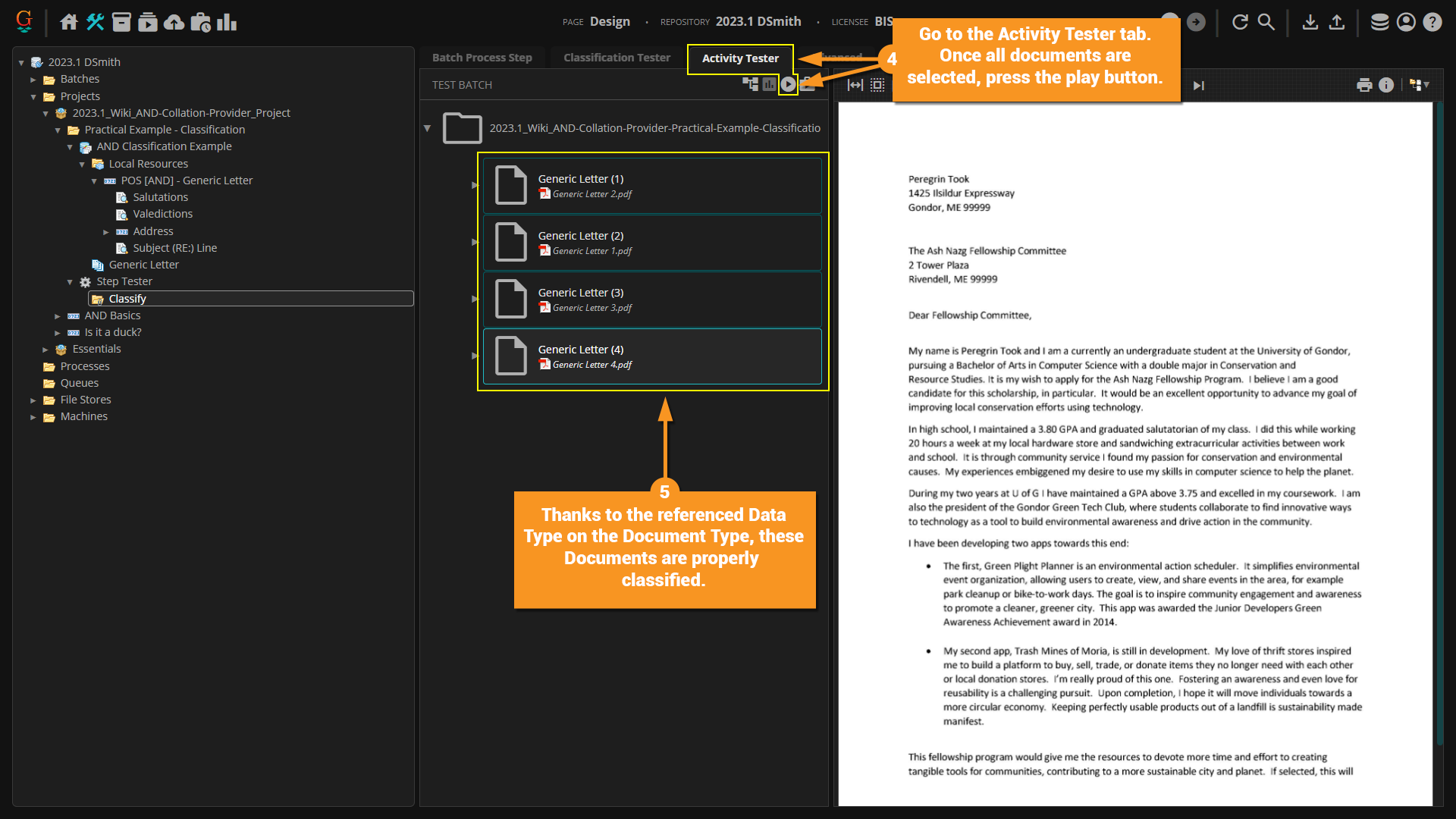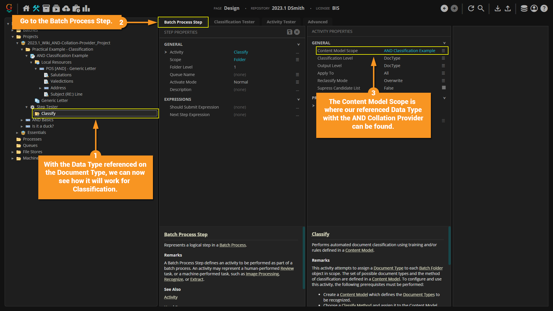 1. With the Data Type referenced on the Document Type, go to the Classify Batch Process Step to observe how the AND Collation Provider, when properly configured, can be used for classification.